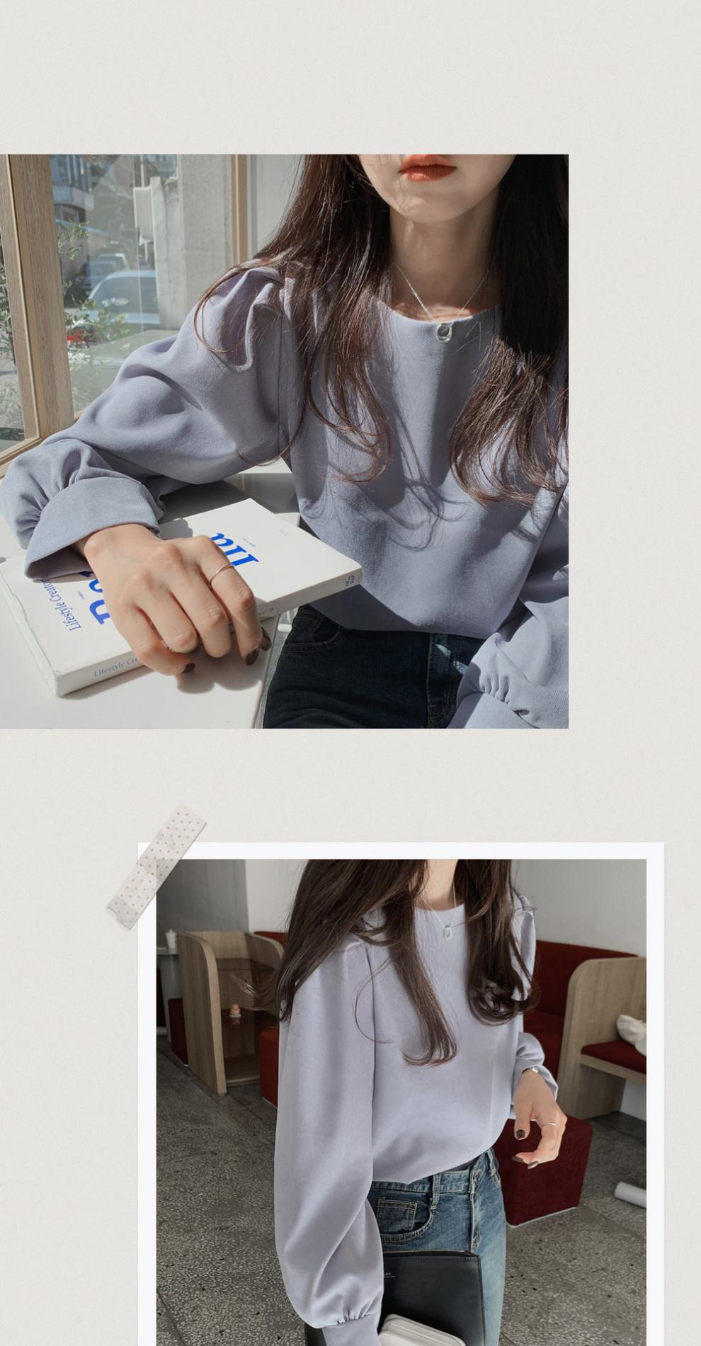 한국 스타일 새로운 스타일 간단한 모든 매치 라운드 넥 긴 소매 여성 최고 스타일리스트 디자인 감각 틈새 스타일리스트 연령 감소스토어 가기