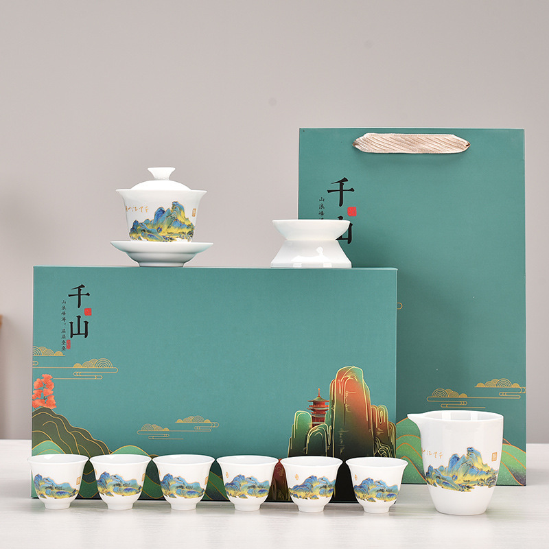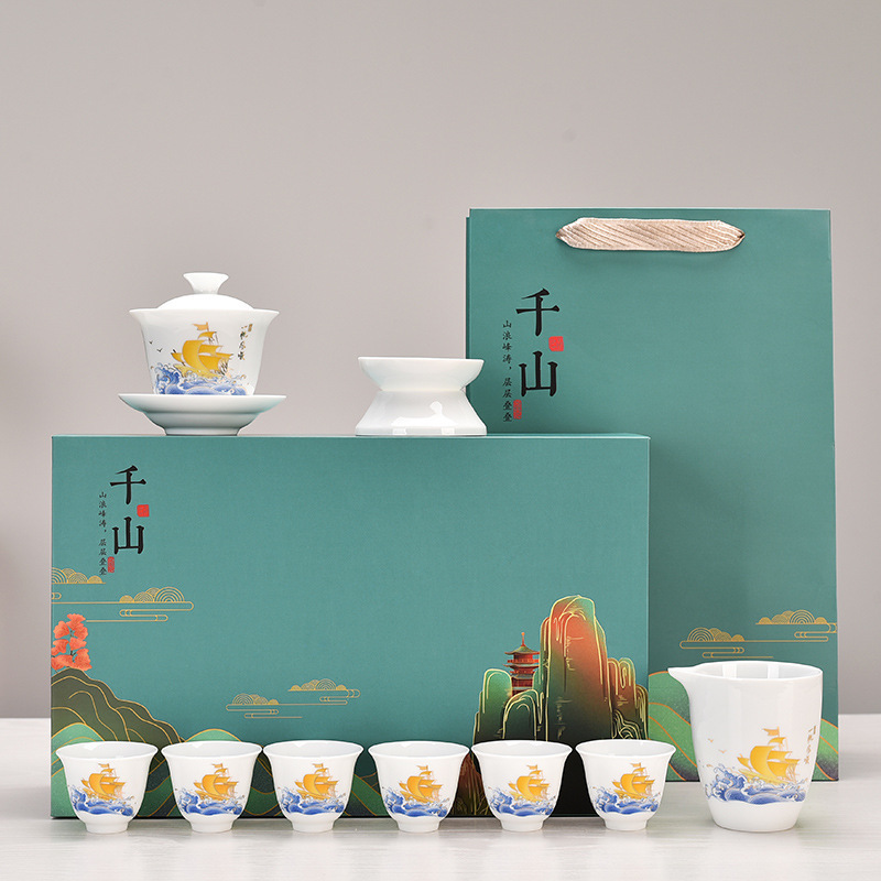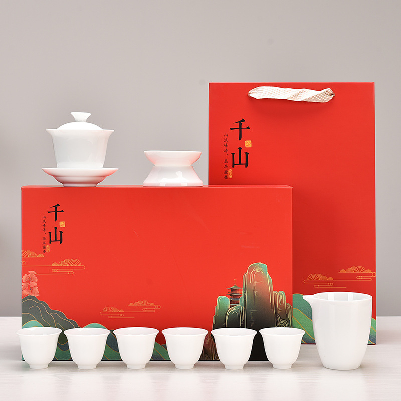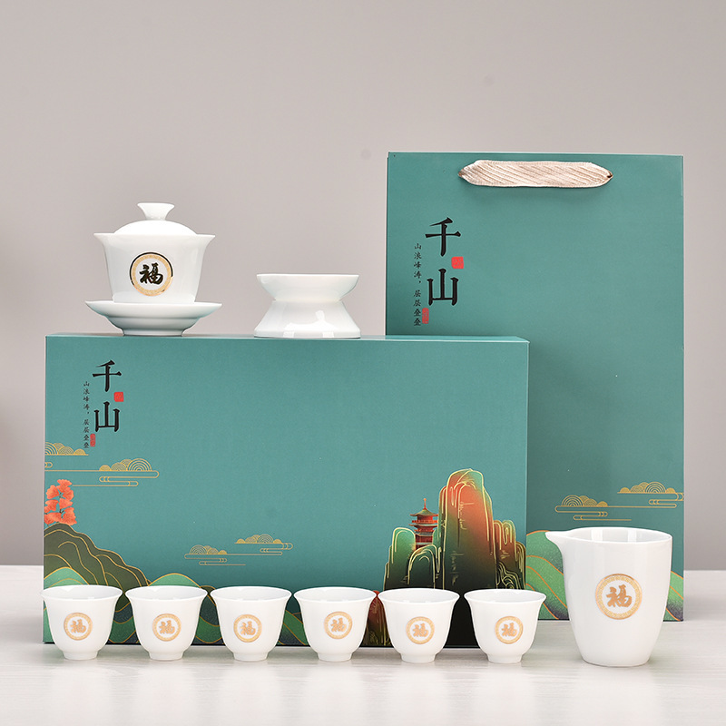 중추절 선물 수천 마일 가이 그릇 흰색 도자기 차 세트 세트 세트 비즈니스 사무실 선물 상자 인쇄 로고스토어 가기