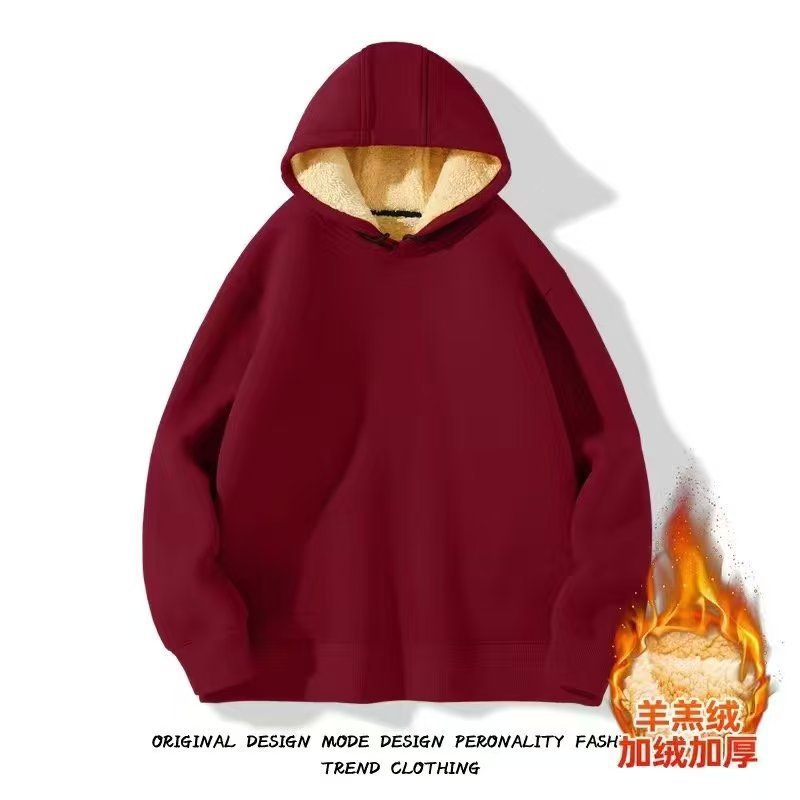 가을과 겨울 새로운 양고기 벨벳 따뜻한 남자 스웨터 카디건 후드 지퍼 모든 매치 캐주얼 기모 두꺼운 코트스토어 가기