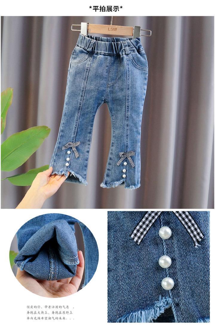 여아 바지 2021 New 패션 청바지 봄 한국식 올매치 서양식 패셔너블한 슬림핏 플레어 팬츠 봄과 가을스토어 가기