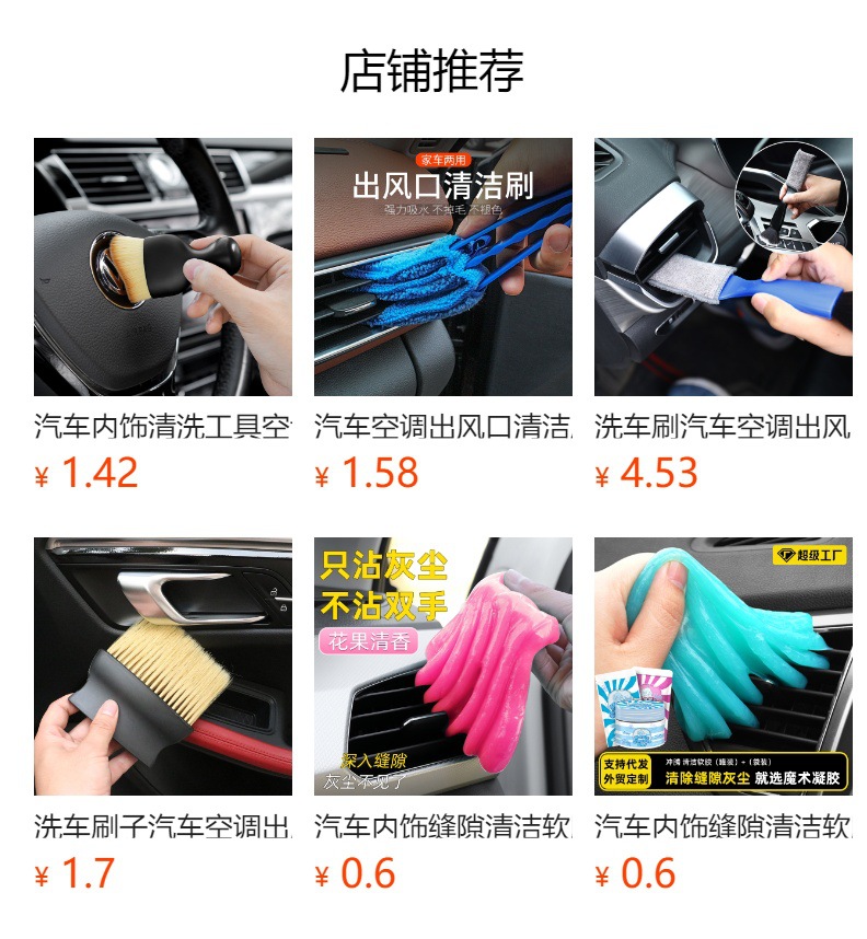 1、可擦拭汽车空调扇叶,车门储物格、中控台杯座、仪表台能容易吸灰的角落。