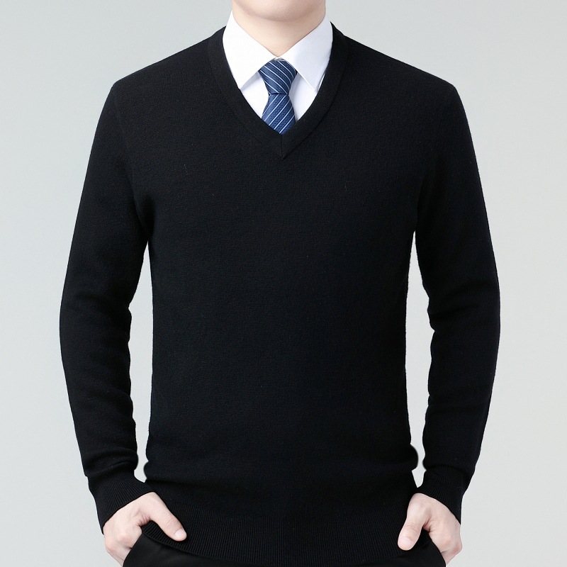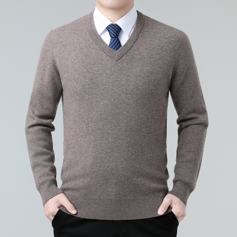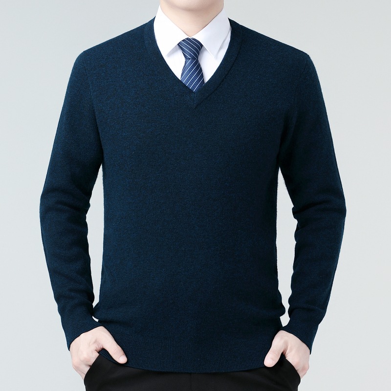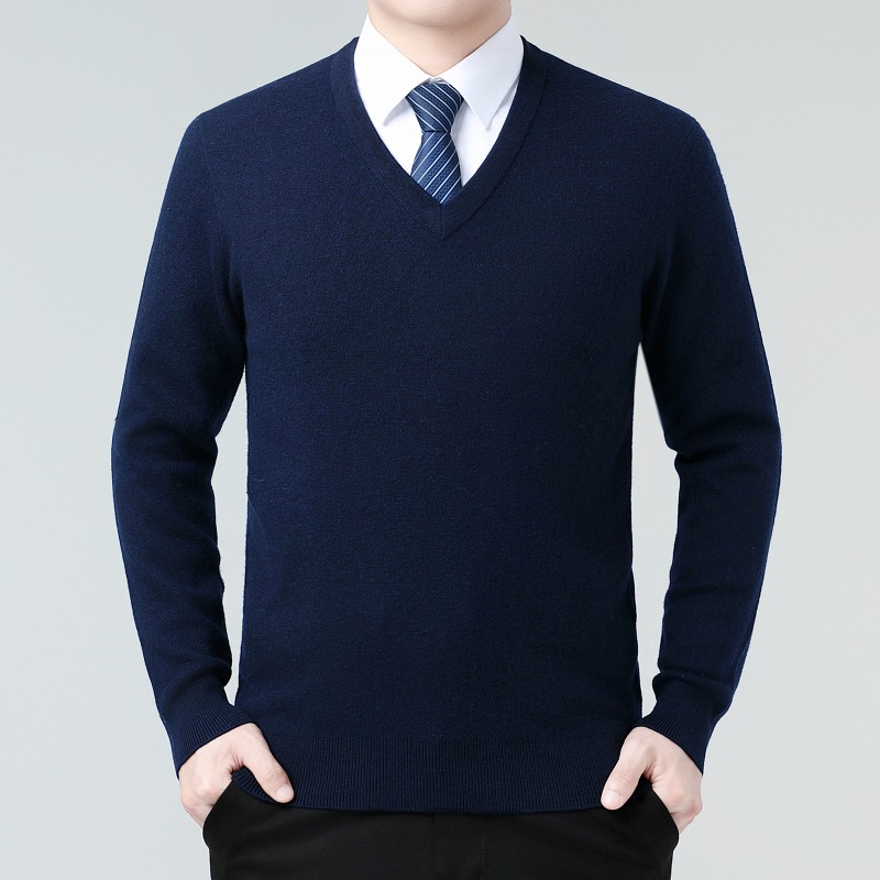 2024 새로운 겨울 남성 캐시미어 스웨터 비즈니스 캐주얼 중년 남성 V 넥 두꺼운 따뜻한 스웨터