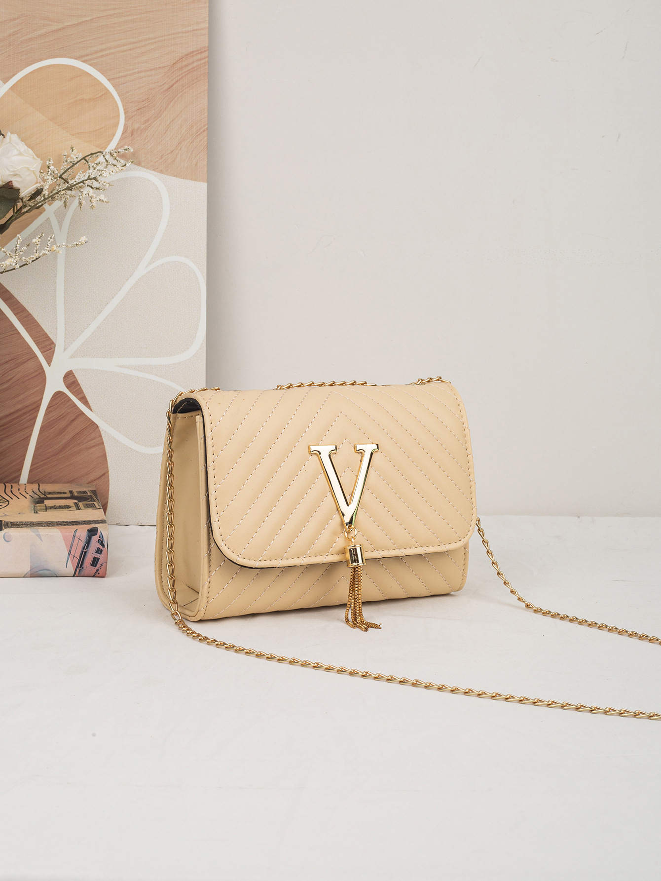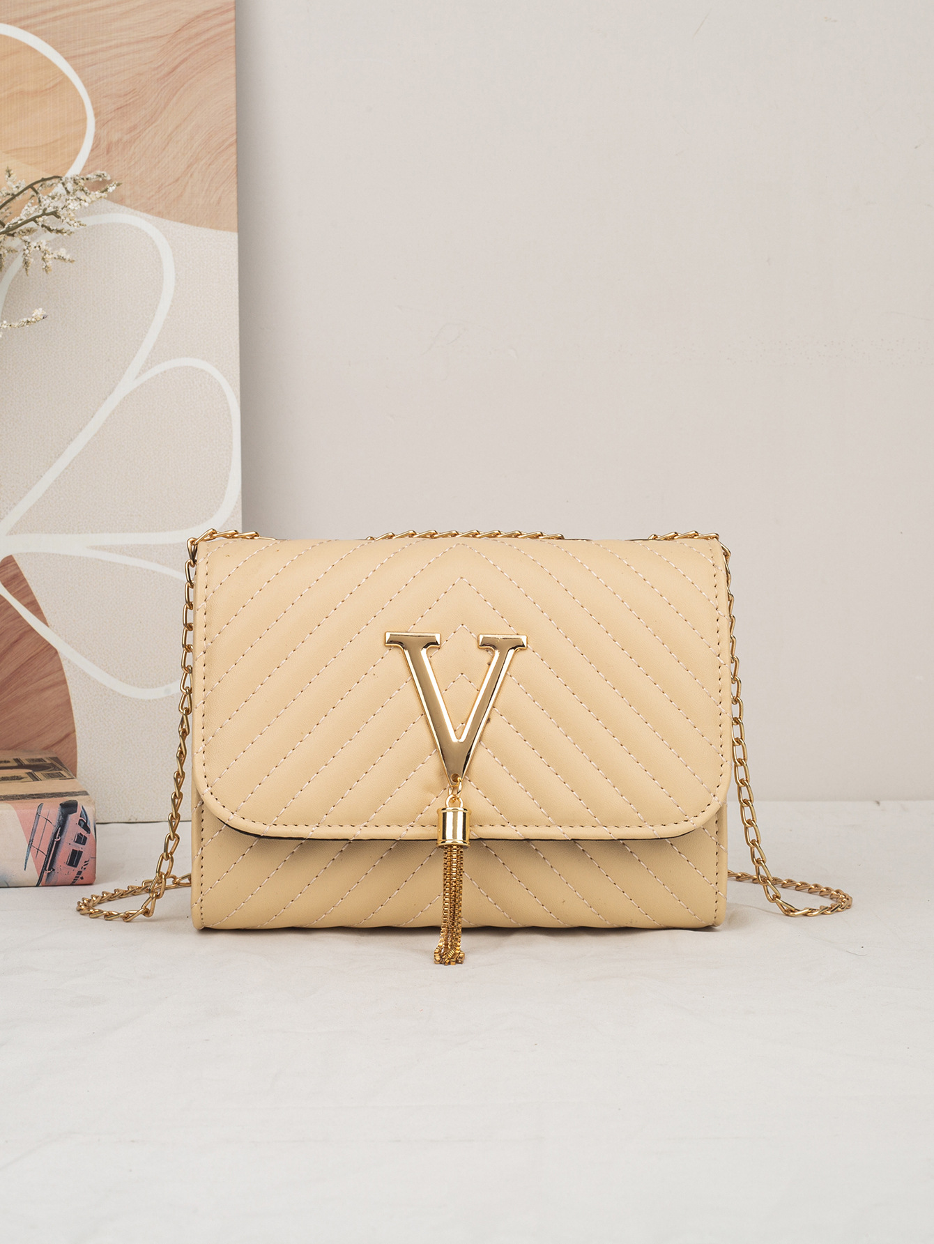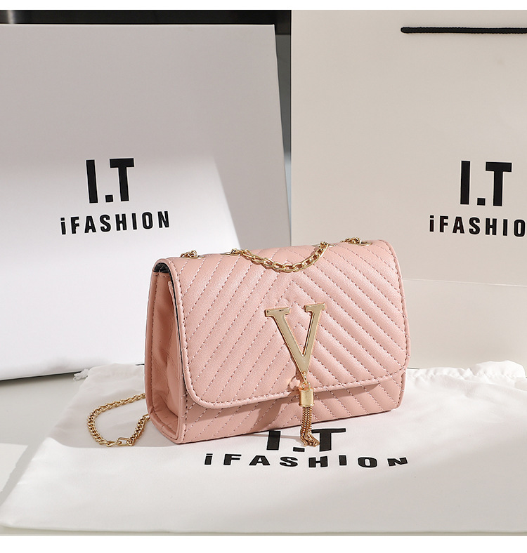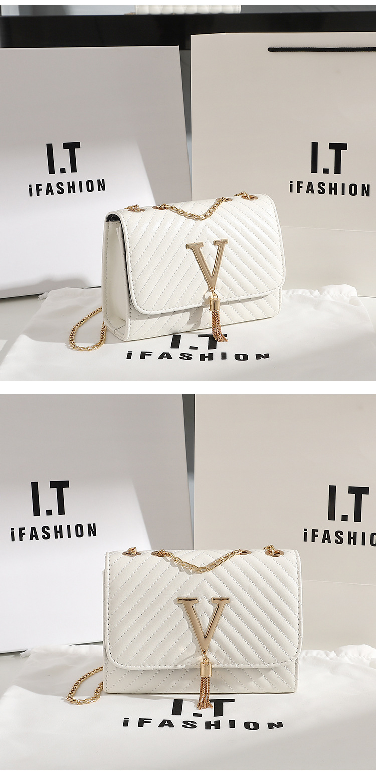 트렌디 여성 가방 2025 새로운 패션 스트라이프 자수 어깨 가방 V 자형 Tassels 장식 Crossbody 가방 드롭 배송