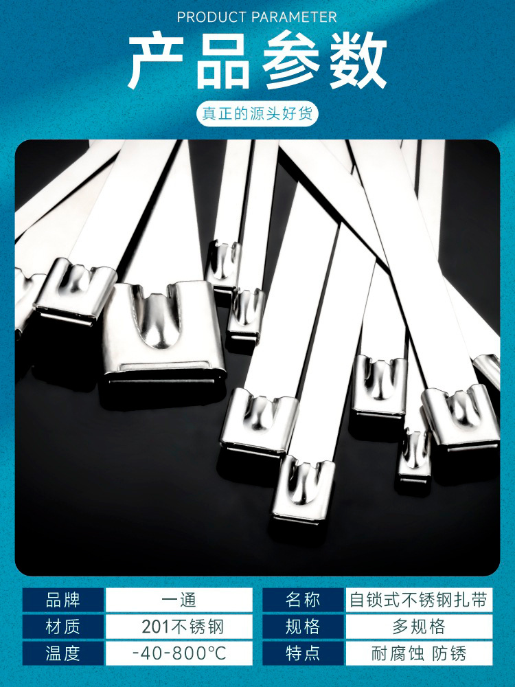 스테인레스 스틸 케이블 타이 4.6 7.9 자체 잠금 케이블 타이 고온 저항 금속 케이블 타이 버클 케이블 타이 50