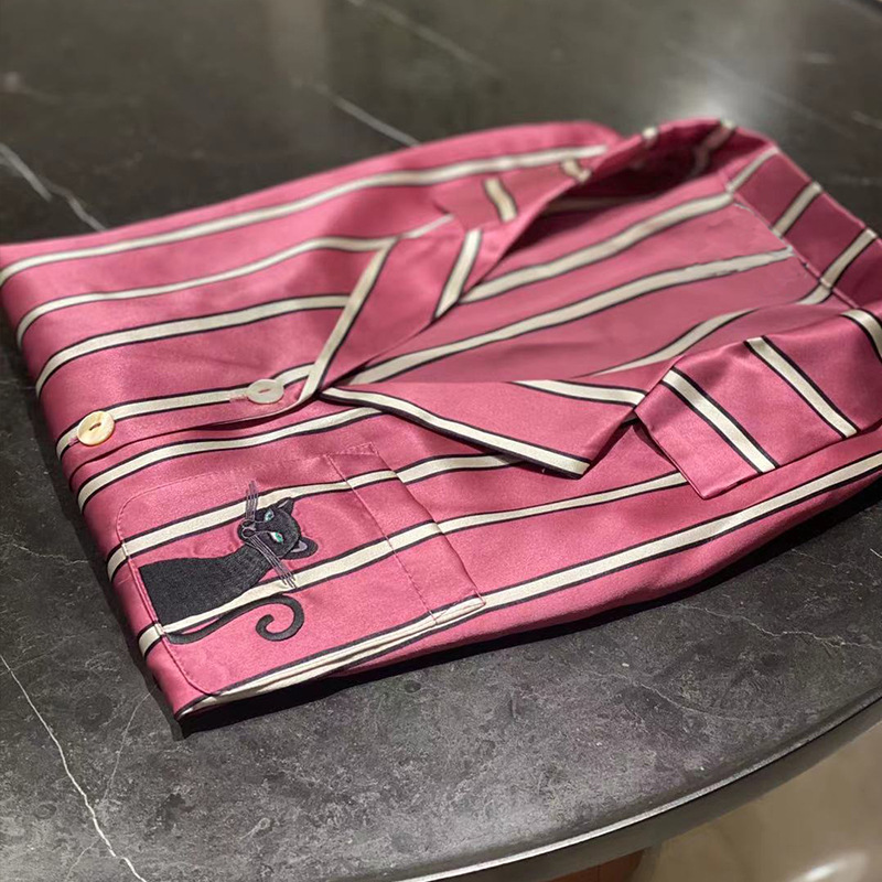 재고정리! 핑크 스트라이프 블랙 팬더 커플 잠옷 아이스 실크 얇은 귀여운 홈웨어 세트 봄 여름 착용 가능스토어 가기