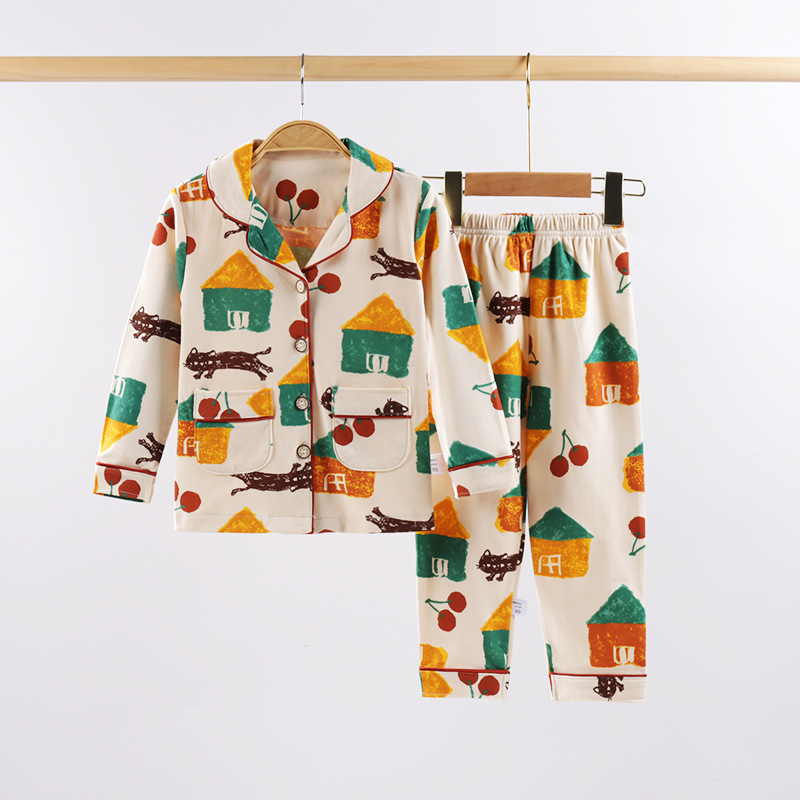 봄과 가을 긴팔 면 파자마를 세트 어린이 가디건 가정복 카테고리 남아 여아 캐주얼 의류스토어 가기
