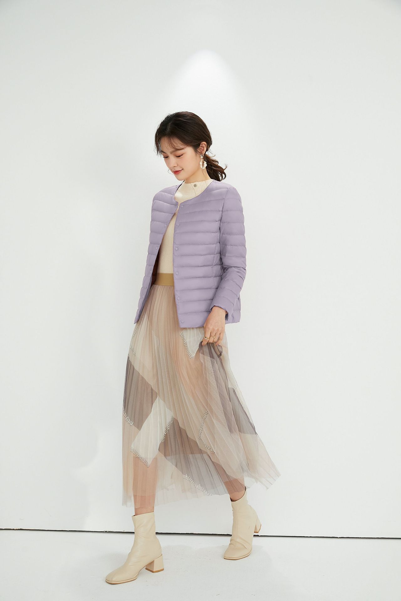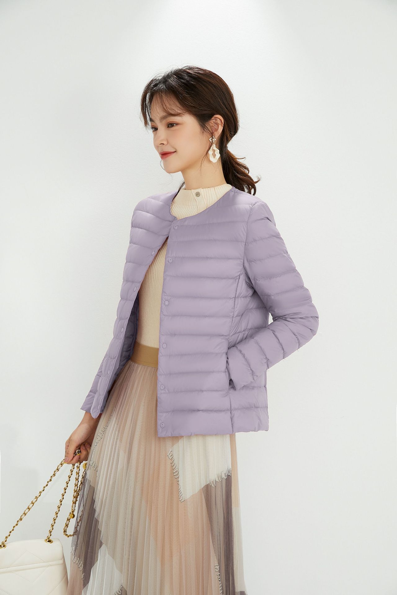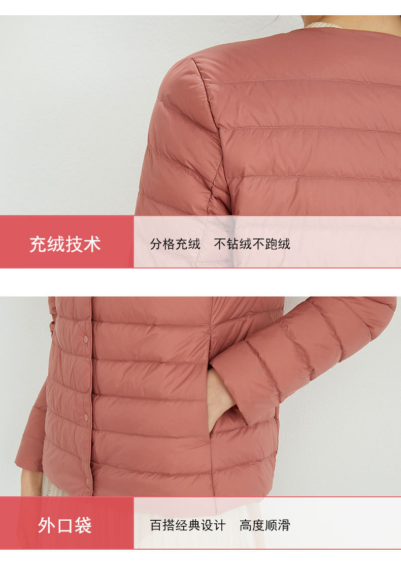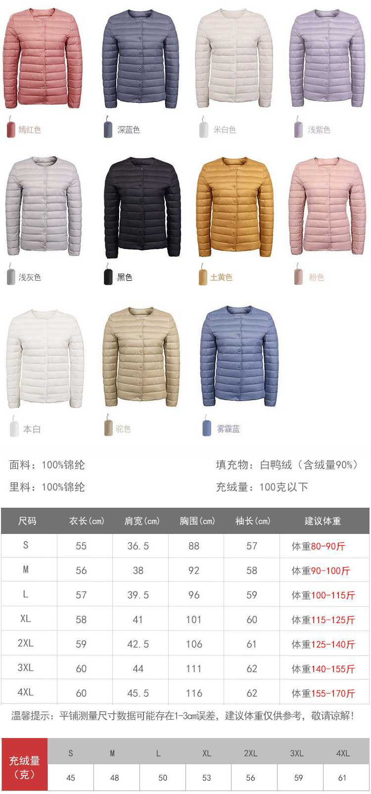 我们采用的是新国标90绒子含量的白鸭绒,绒朵大,穿在身上非常舒服,而且不易钻绒跑绒。面料也是非常柔软舒适的,因为是轻薄款,两层做法,里面没有胆布,注重轻而薄!不管是上班还是在家,都可以穿羽绒内胆哦,也是不挑年龄的。学生,白领,中老年人都适合的。