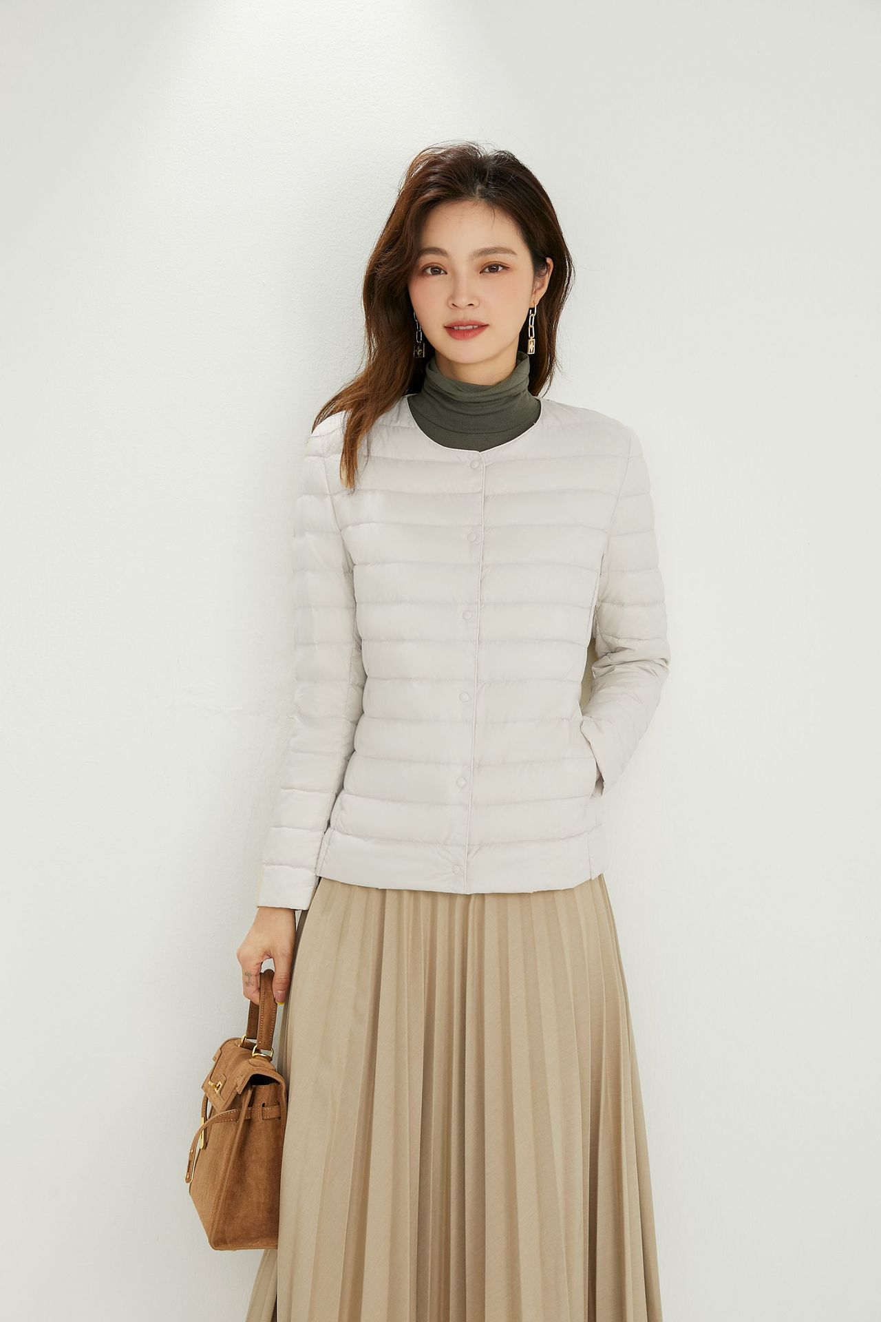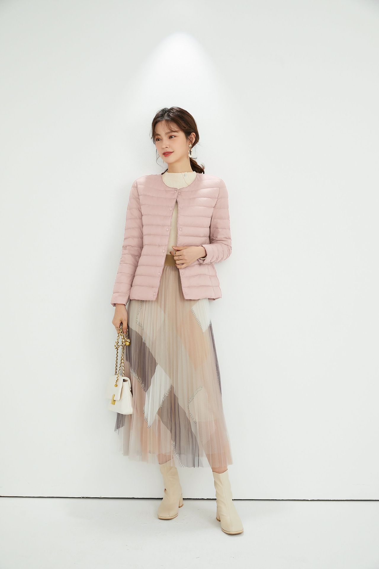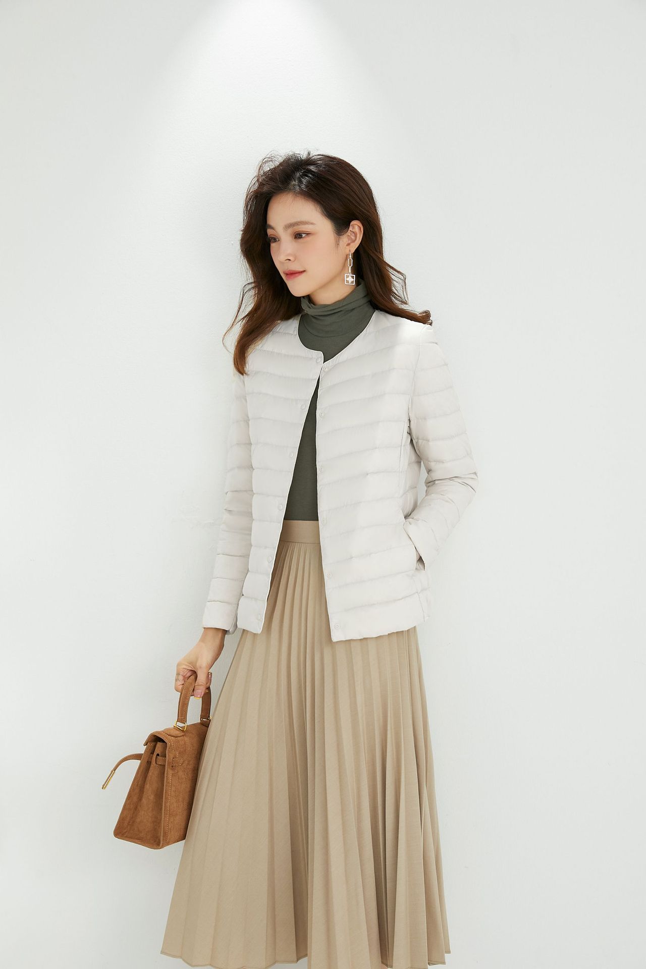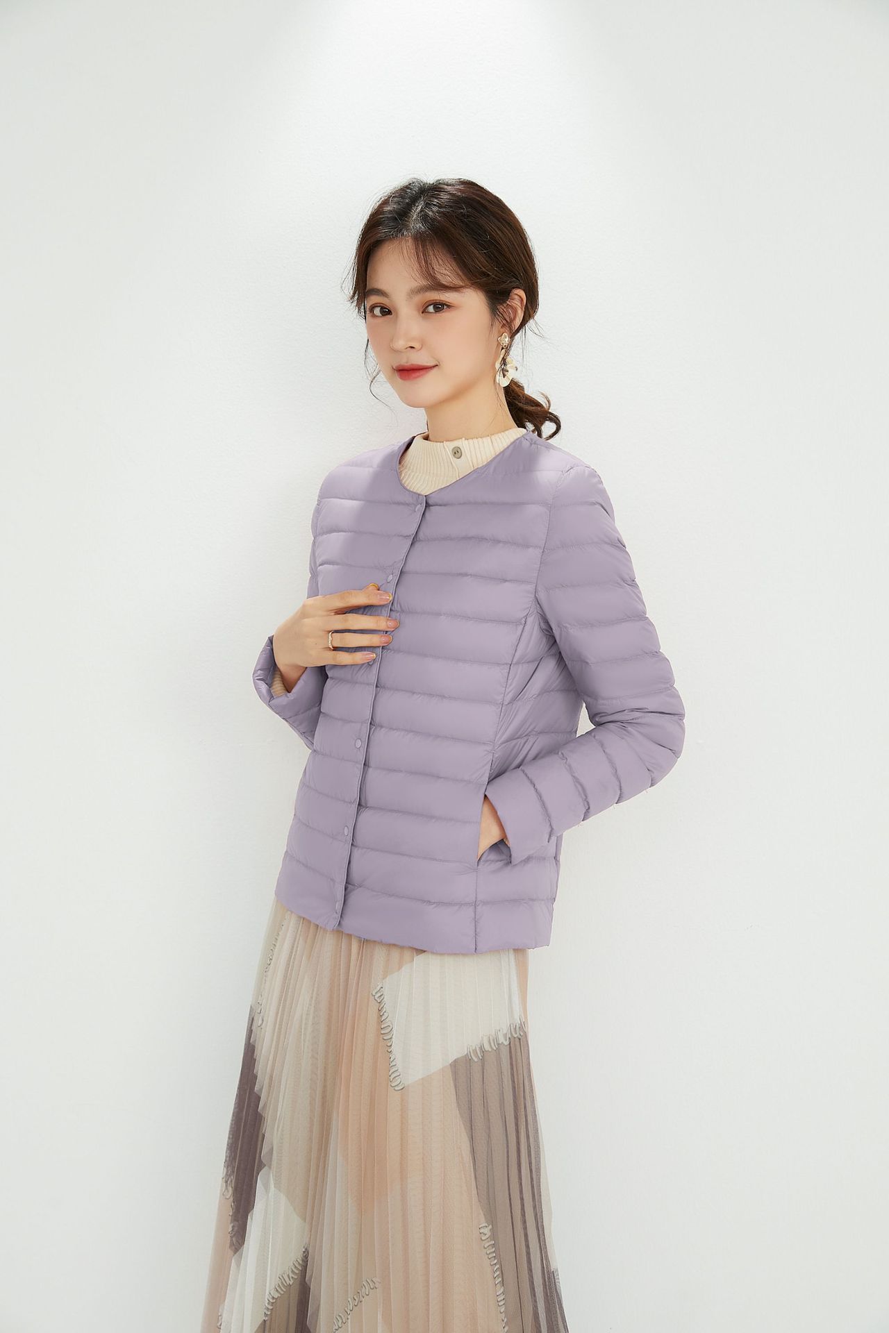 我们采用的是新国标90绒子含量的白鸭绒,绒朵大,穿在身上非常舒服,而且不易钻绒跑绒。面料也是非常柔软舒适的,因为是轻薄款,两层做法,里面没有胆布,注重轻而薄!不管是上班还是在家,都可以穿羽绒内胆哦,也是不挑年龄的。学生,白领,中老年人都适合的。