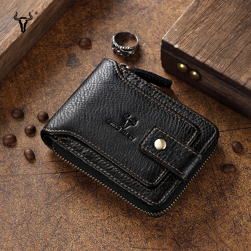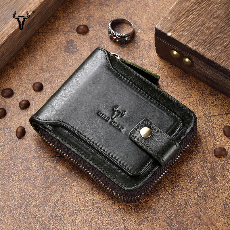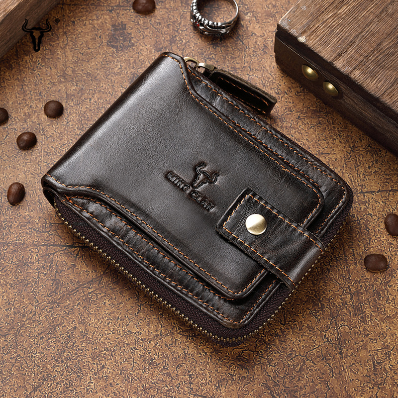유명 장인 가죽 제품 정품 가죽 지갑 짧은 지퍼 멀티 카드 슬롯 동전 지갑 유럽과 미국의 복고풍 첫 번째 레이어 소 가죽 지갑 도매스토어 가기