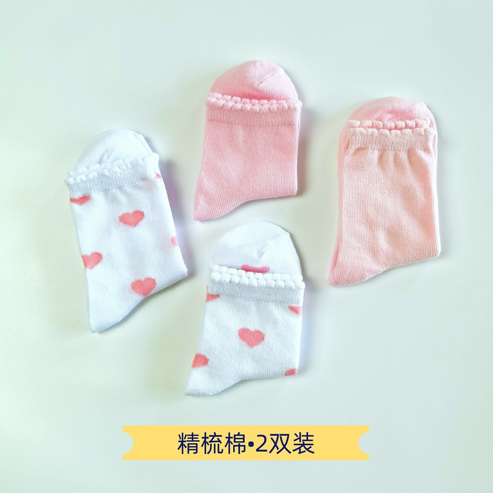 봄과 가을 핑크 사랑 어린이 소녀 양말 단색 빗질면 버블 레이스 큰 어린이 중간 튜브 학생 양말