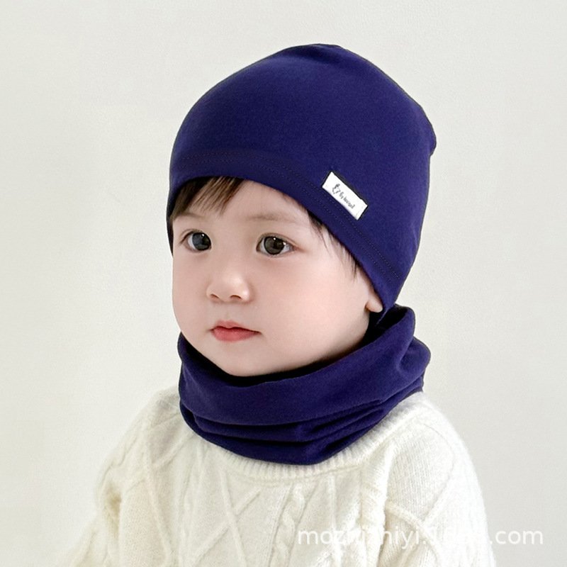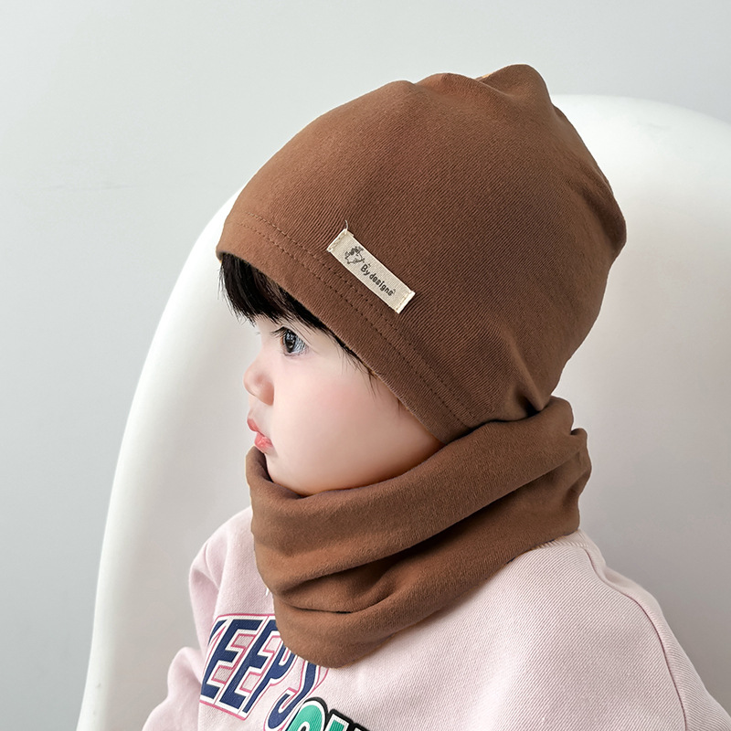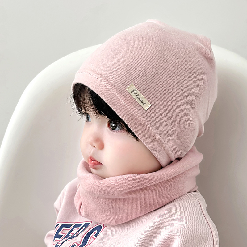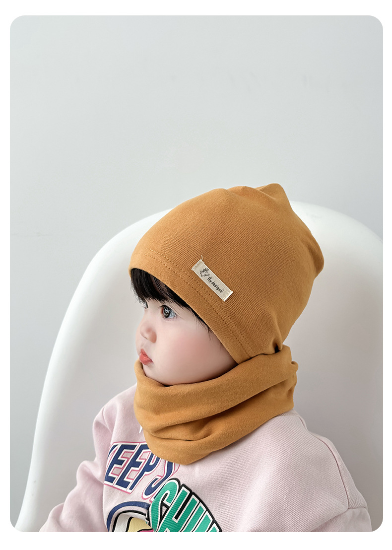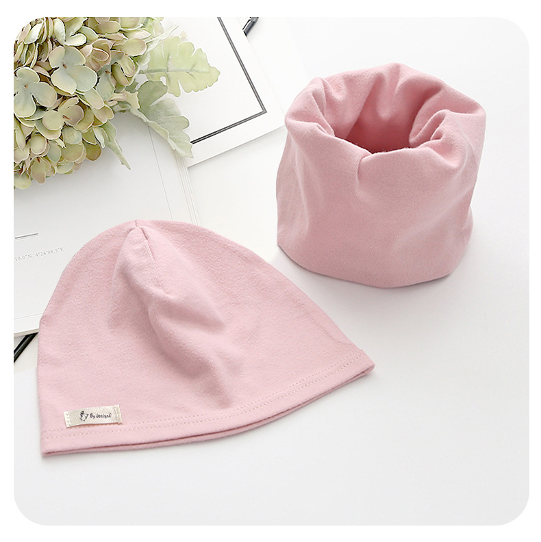 가을과 겨울 새 어린이 모자 스카프 세트 코튼 싱글 레이어 아기 풀오버 캡 단색 뼈없는 스카프 2 종 세트스토어 가기