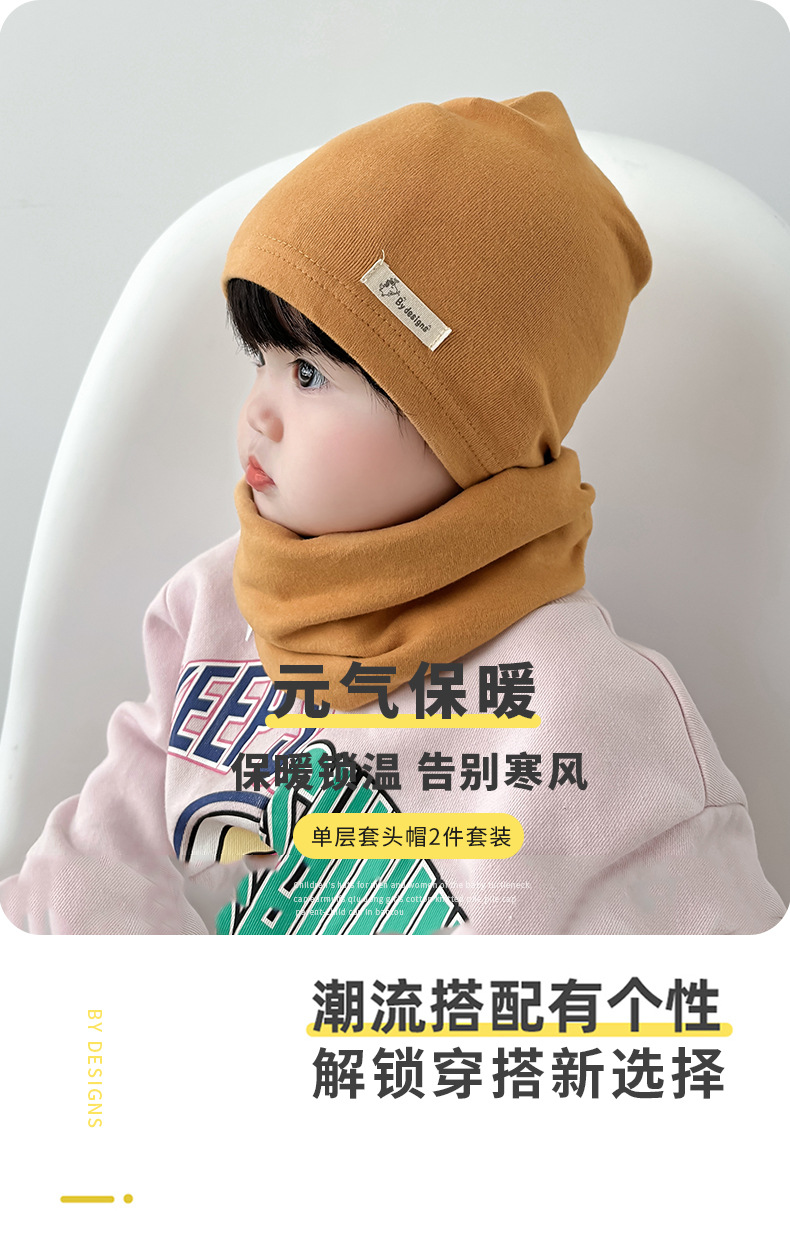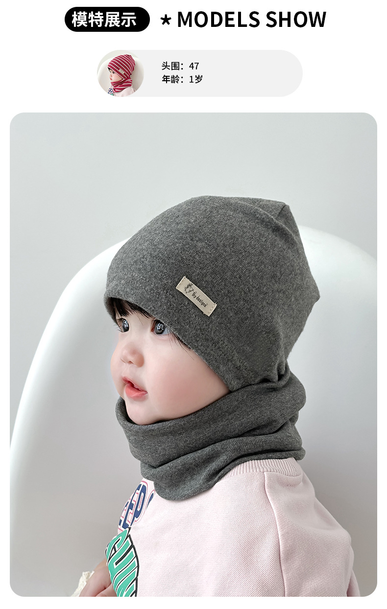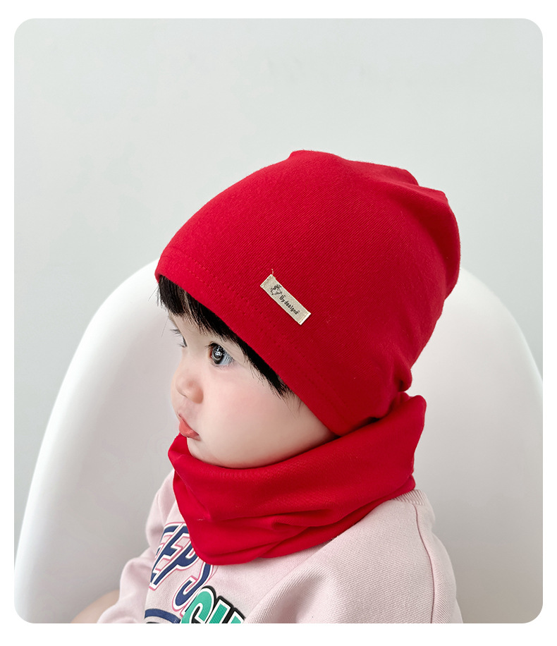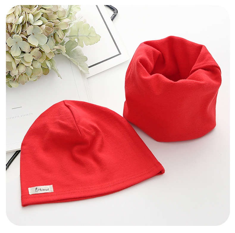 가을과 겨울 새 어린이 모자 스카프 세트 코튼 싱글 레이어 아기 풀오버 캡 단색 뼈없는 스카프 2 종 세트스토어 가기