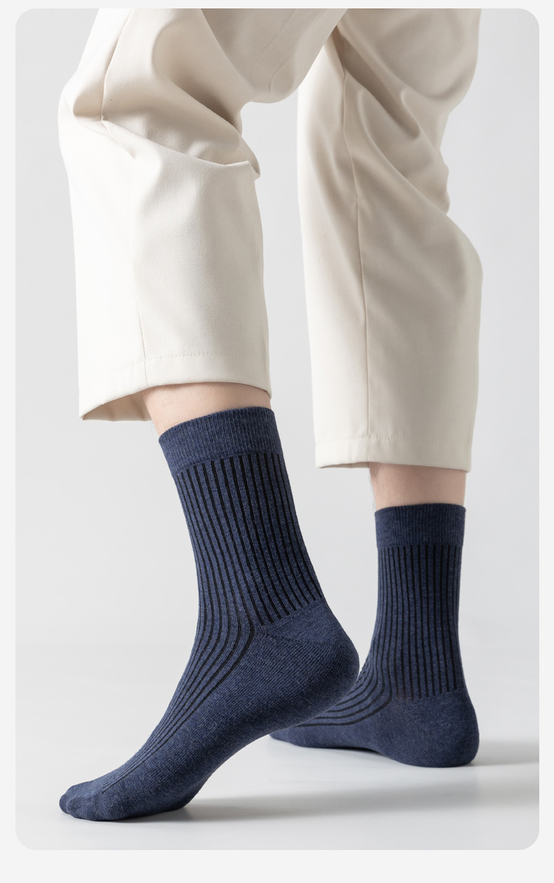 남성용 순면 가을 겨울 두꺼운 이중 바늘 중목 양말 스트라이프 비즈니스 남성용 긴 양말 가을 방취 흡한 남성 양말