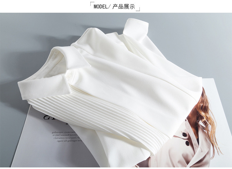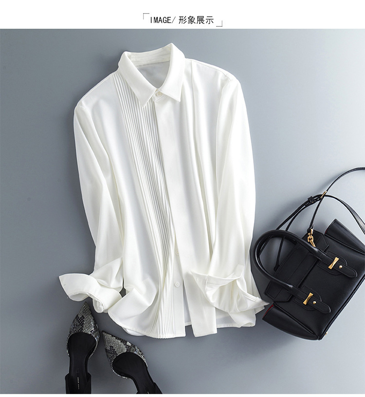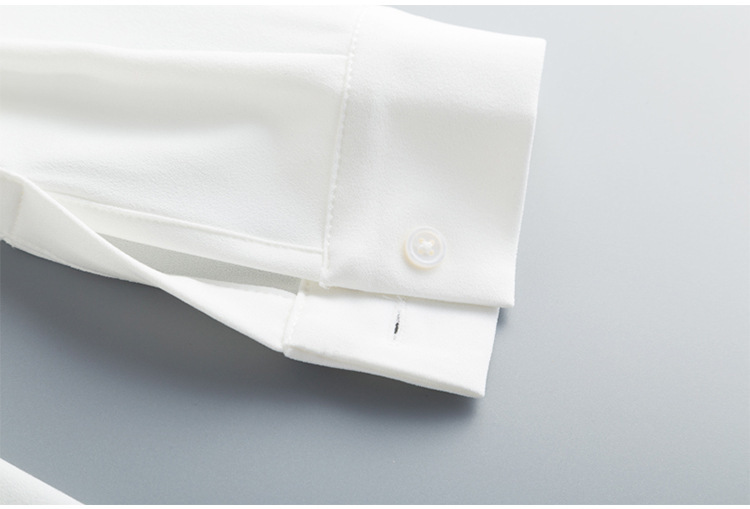 여성용 재고 주름 사각 칼라 쉬폰 흰색 긴 소매 셔츠
