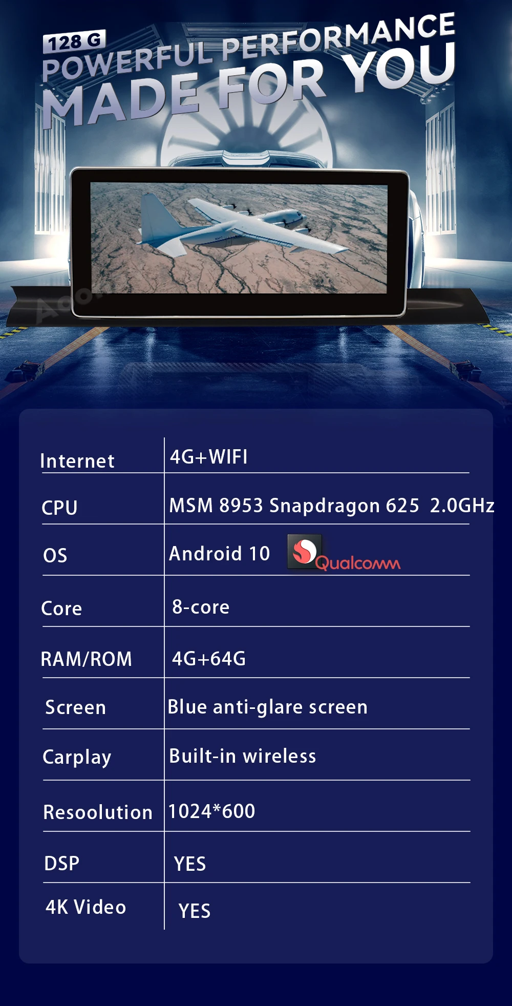 12.3 10.25 英寸 8 核 4+64G Android 10.0 Snapdragon 625 车载收音机 GPS 适用于奥迪 A4L 2017-2019 多媒体 DVD 播放器主机