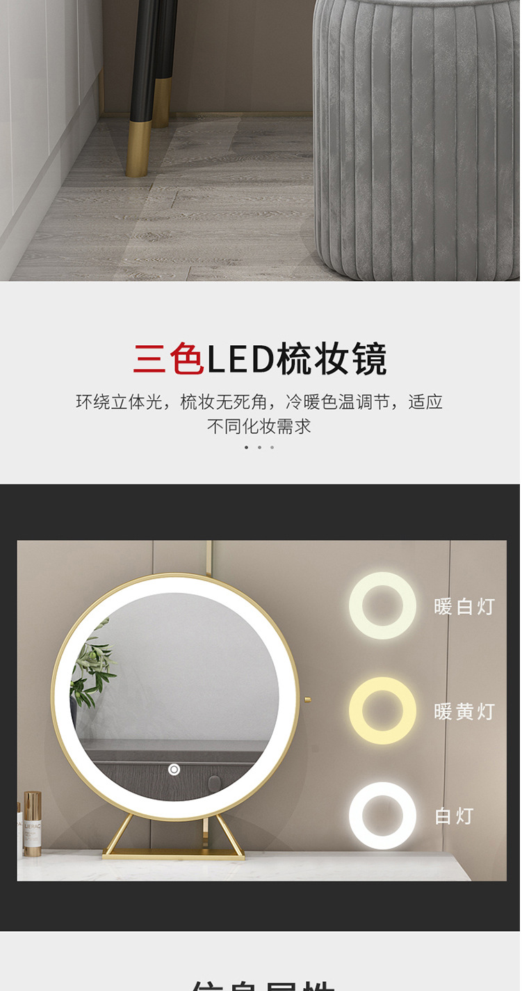 • 전체 세트: 테이블 80 롱 + 사이드 캐비닛 + led 미러 + 라운드 스툴