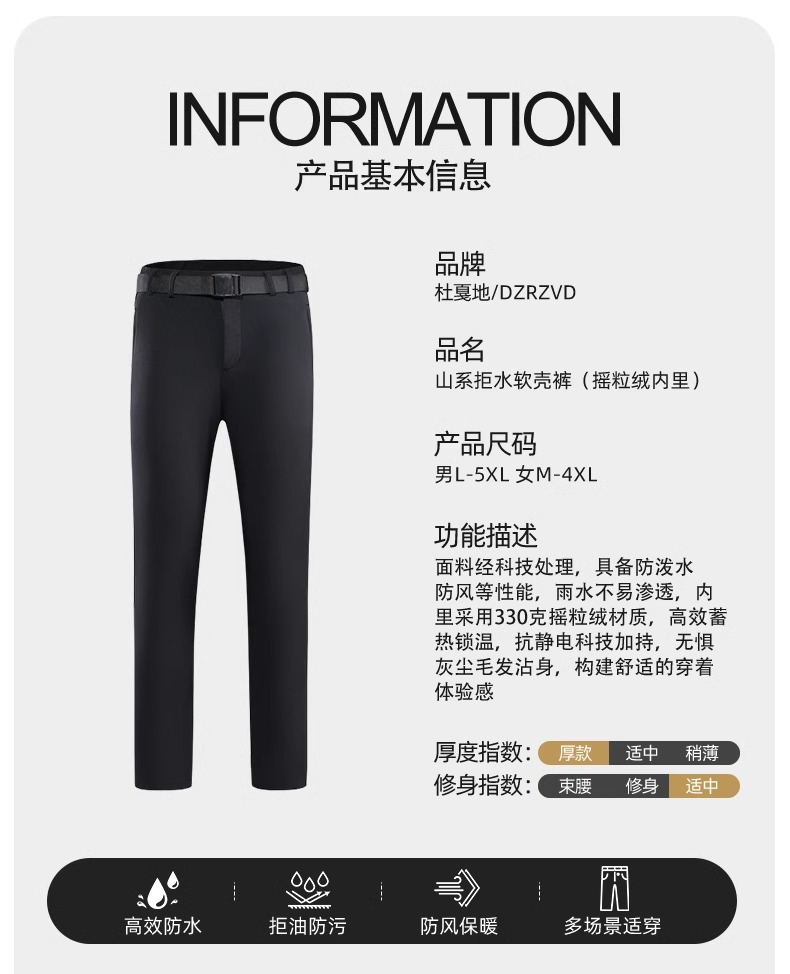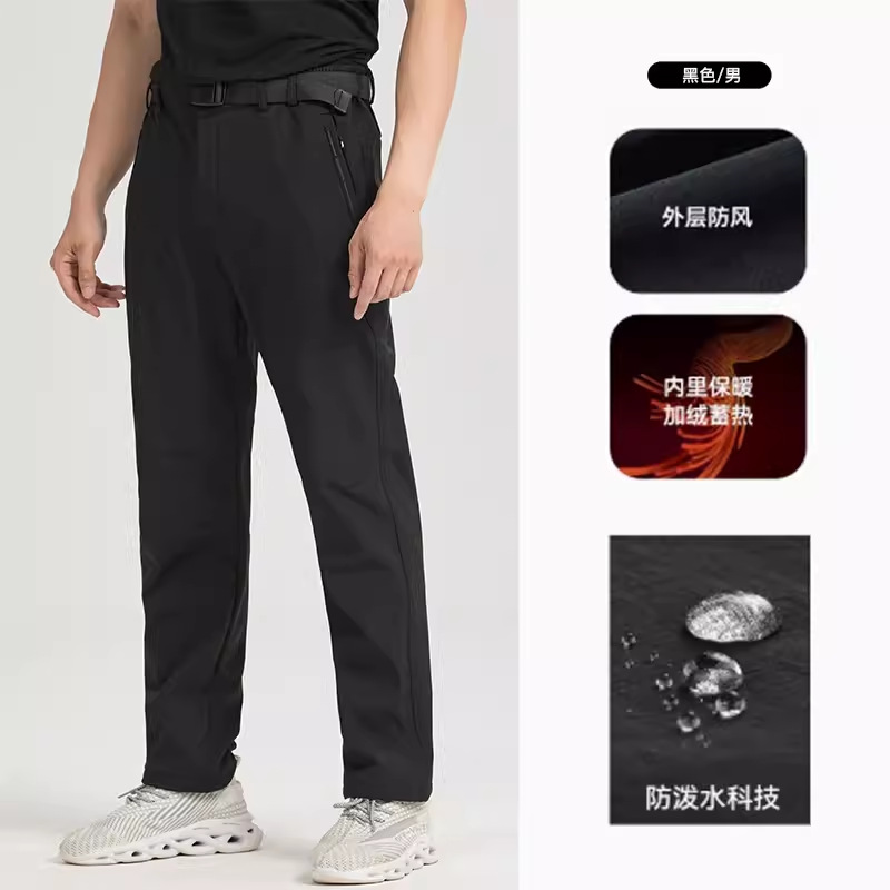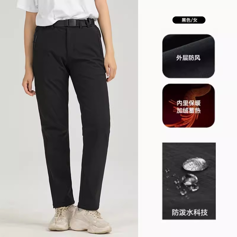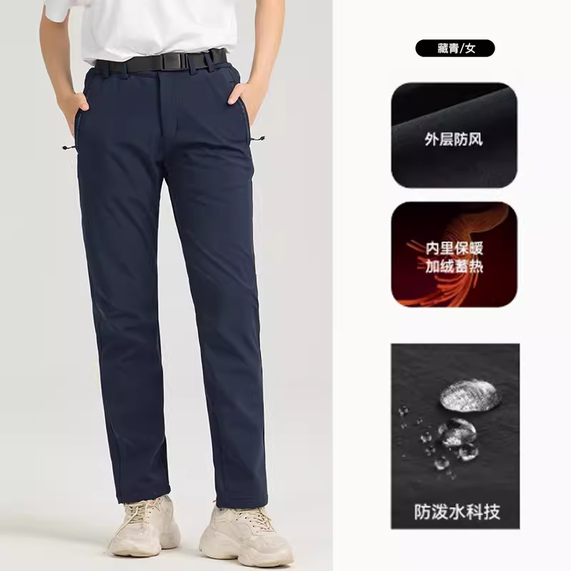 24 새로운 야외 등산 바지 부드러운 쉘 바지 남성용 겨울 따뜻한 방풍 양털 방수제 기모 바지 여성