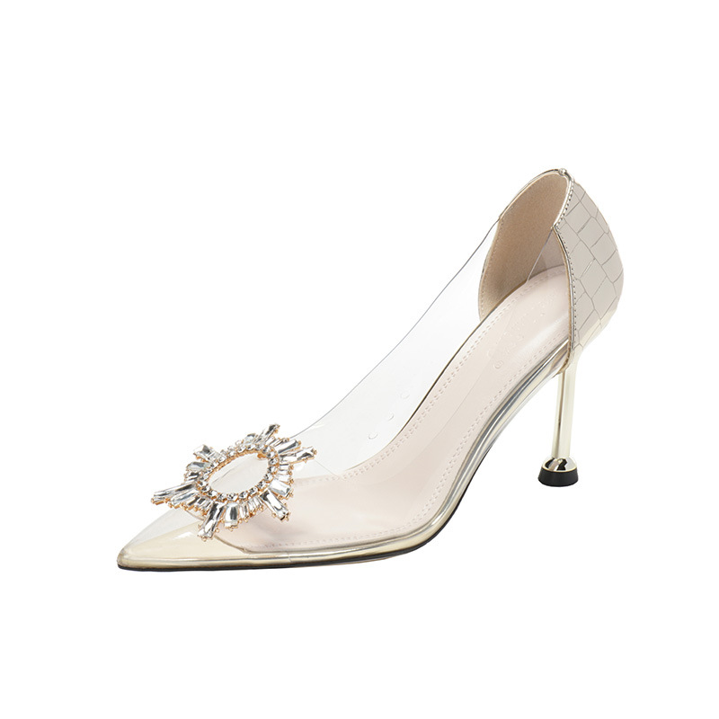 크리스탈 투명 하이힐 새로운 스타일 고양이 발 뒤꿈치 섹시한 뾰족한 라인 석 플러스 사이즈 신발 스몰 사이즈 31 32 33 여성을위한 웨딩 신발스토어 가기