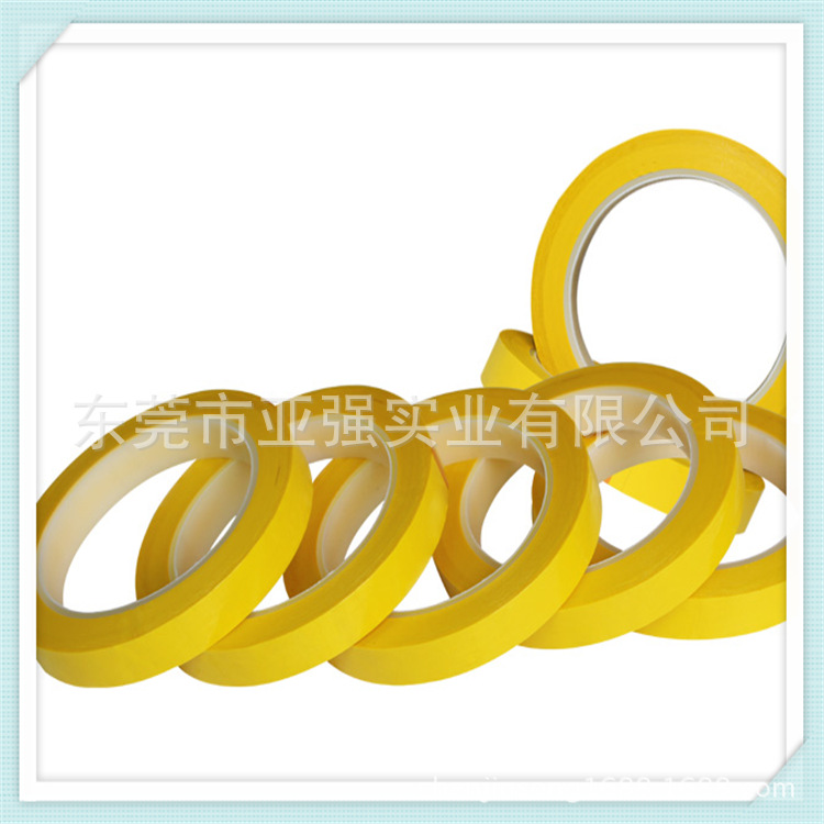 主要技术参数:该产品从形性高,有极佳的抗化学品、抗化剂和防潮能力,并可抵受切割和磨损。(有各种颜色可选颜色:黄.红.黑.绿.蓝.白等多种颜色)不含氯离子适用于线圈电容器及电线缠结粘性佳耐溶剂耐高温. 规格:宽任意.长66M.