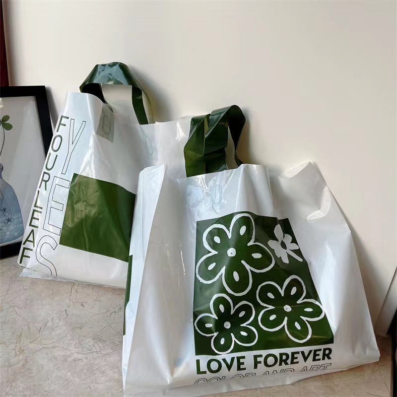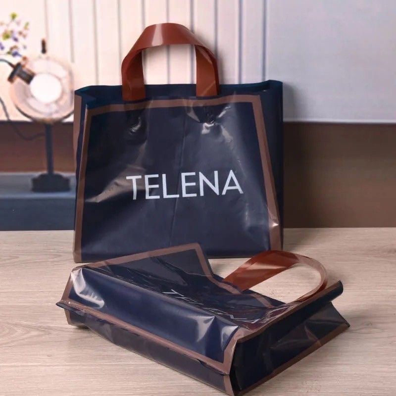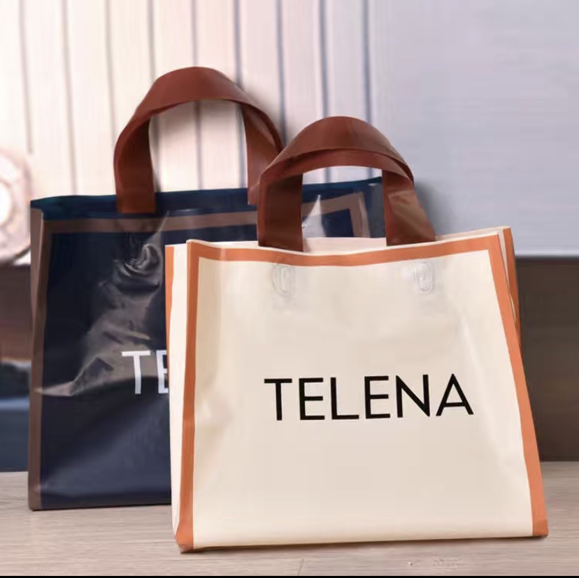세로형 인터넷 유명 의류 매장 가방, 여성 의류용 플라스틱 휴대용 가방, 로고 인쇄 가능, 선물용 휴대용 가방 도매 맞춤 제작스토어 가기
