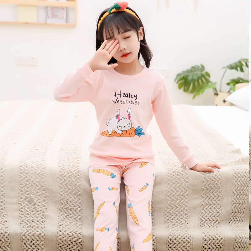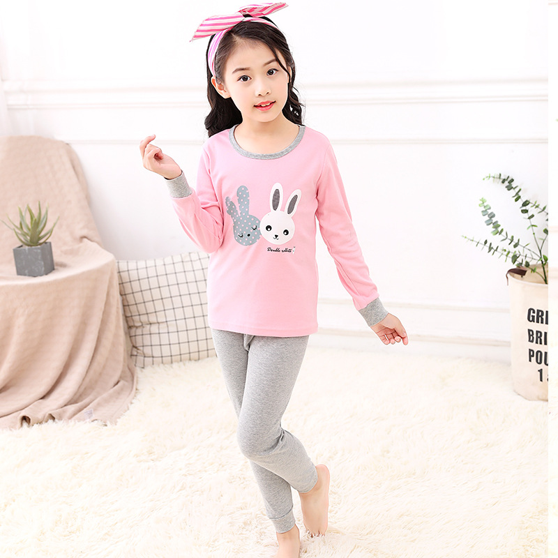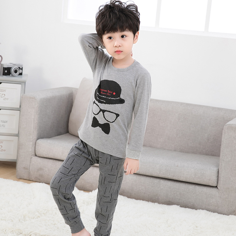 만화 동물 프린트 어린이 가정 옷 두 조각 면 직물 눈동자 면 울 세트 긴 존스와 가을 옷스토어 가기