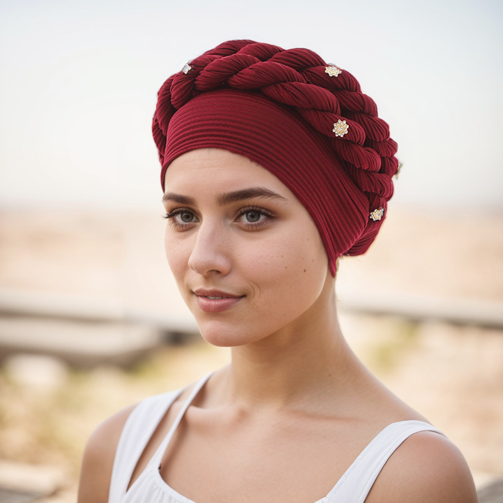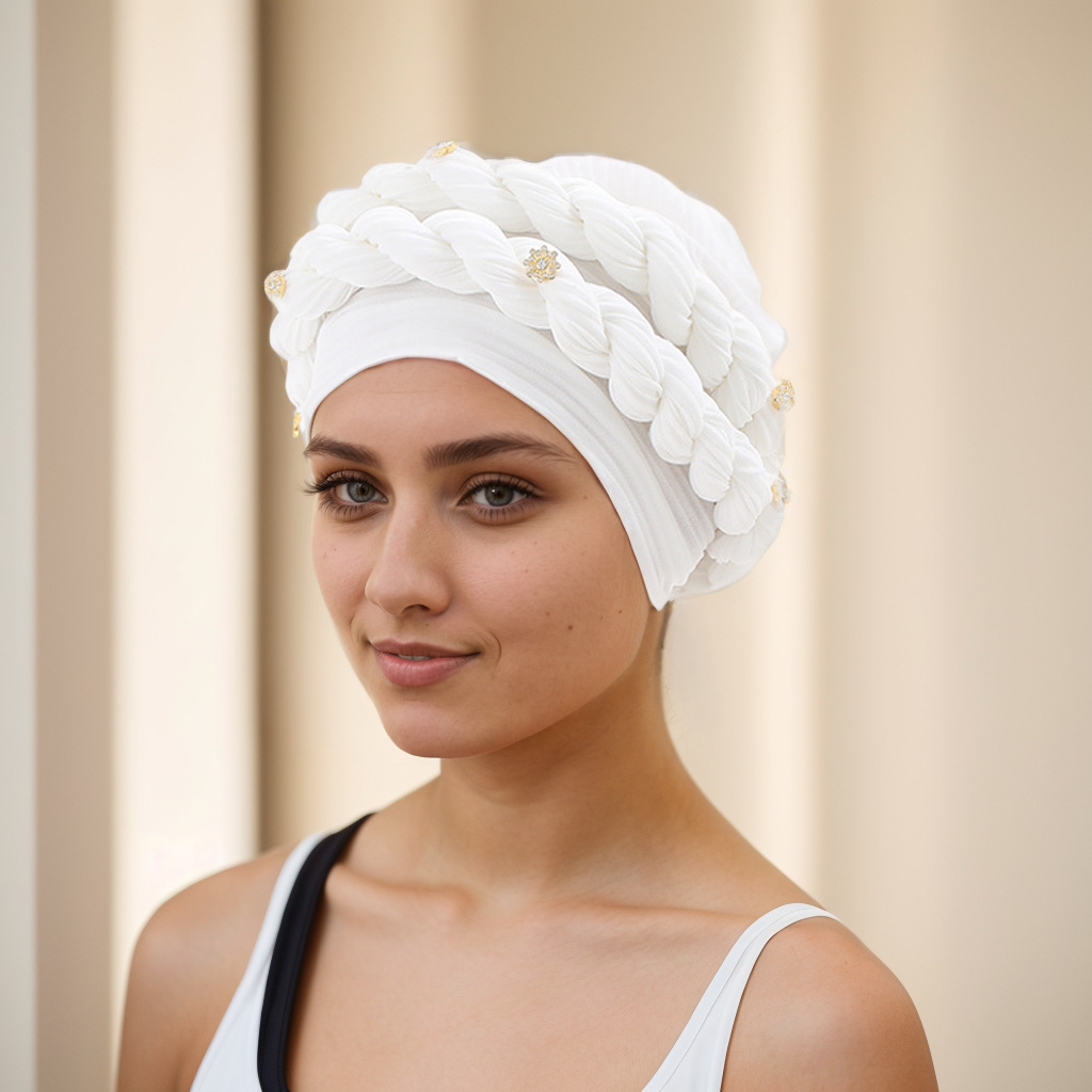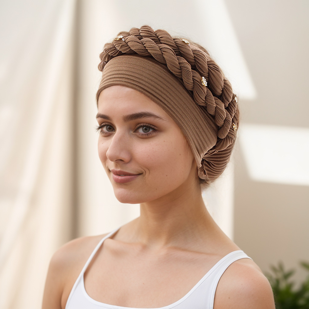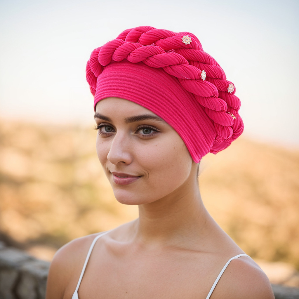 아마존 유럽 및 미국 신상 인기 바오터우 모자 브레이드 모자 주름진 꼬임 머리띠 무슬림 모자 공장 직판스토어 가기