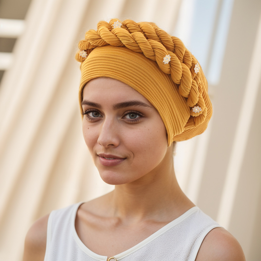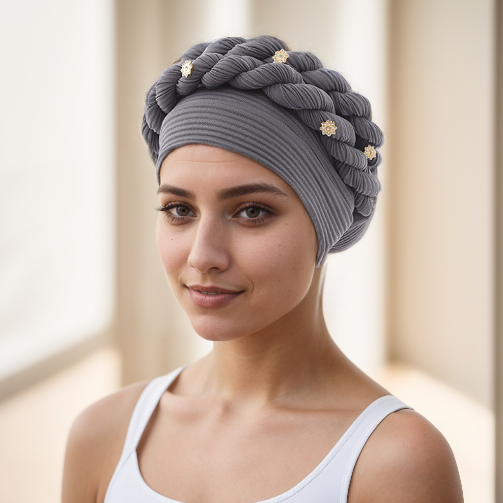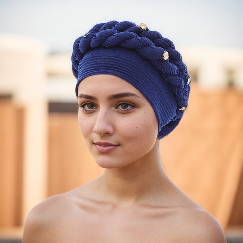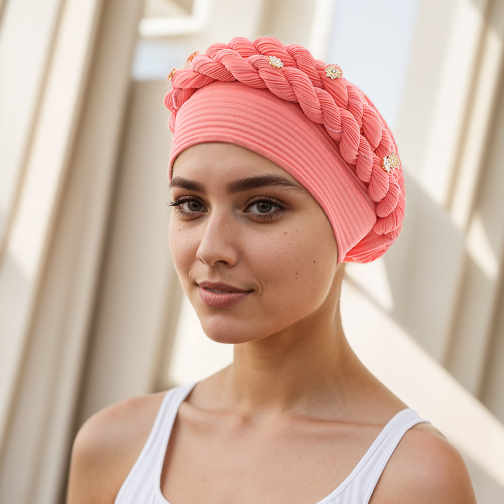 아마존 유럽 및 미국 신상 인기 바오터우 모자 브레이드 모자 주름진 꼬임 머리띠 무슬림 모자 공장 직판스토어 가기