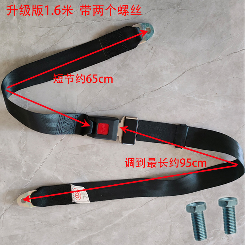 汽车安全带产品采用涤纶织带材质,产品抗拉强度为26700N,开启力小于137N,工作寿命大于5000次,。此款为汽车简易两点式安全带。