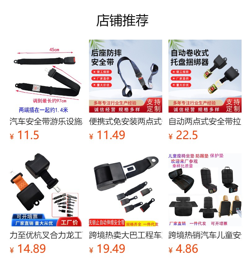 五、关于产品材质:安全带的 面料采用的是涤纶的面料,很厚实,很耐磨。很结实。 和司机用的安全带是同样的面料。