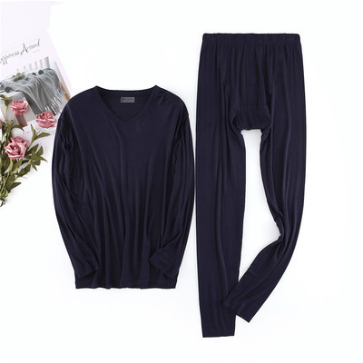 남자의 가을 의류 가을 바지 모달 잠옷 세트 속옷 가정 의류 플러스 지방 플러스 사이즈 가을과 겨울 기본 세대 도매스토어 가기