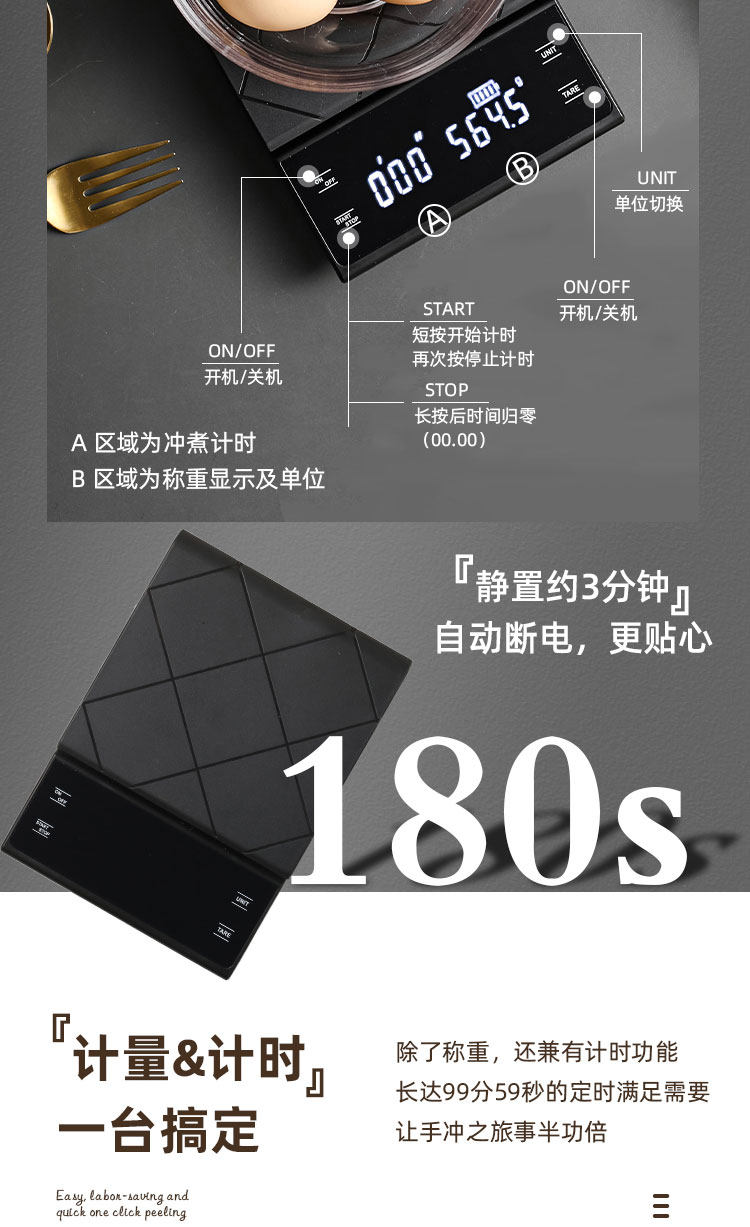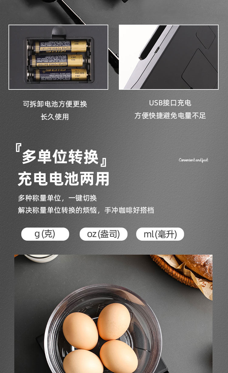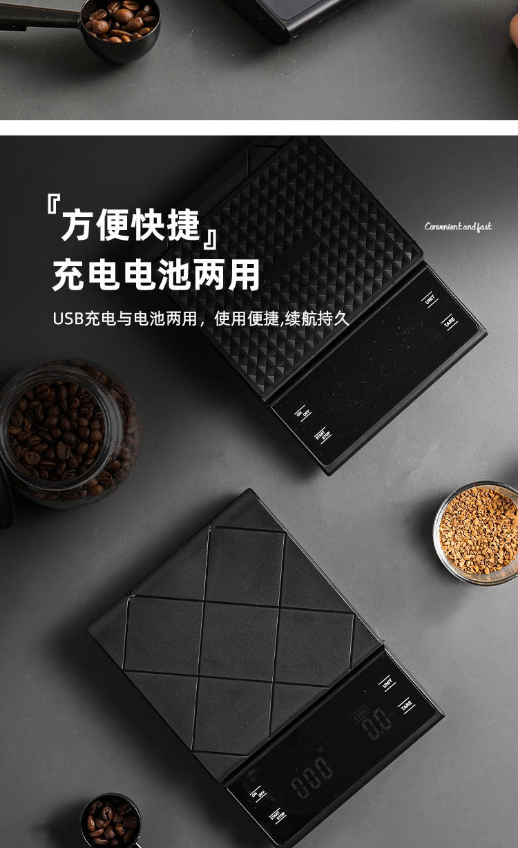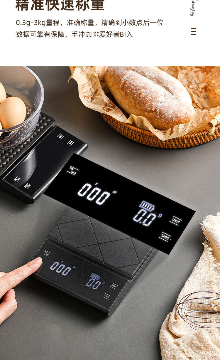 새로운 충전식 LED 터치 커피 스케일 전자 저울 타이밍 전자 주방 스케일 바 홈 크로스 보더 도매스토어 가기