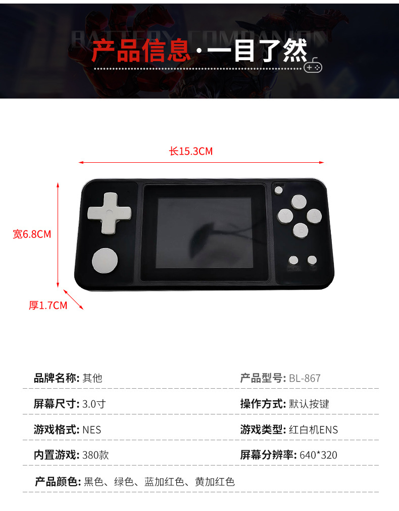 재고 공급 새로운 클래식 핸드 헬드 게임기 레트로 향수 어린 시절 게임 핸드 헬드 미니 더블 380