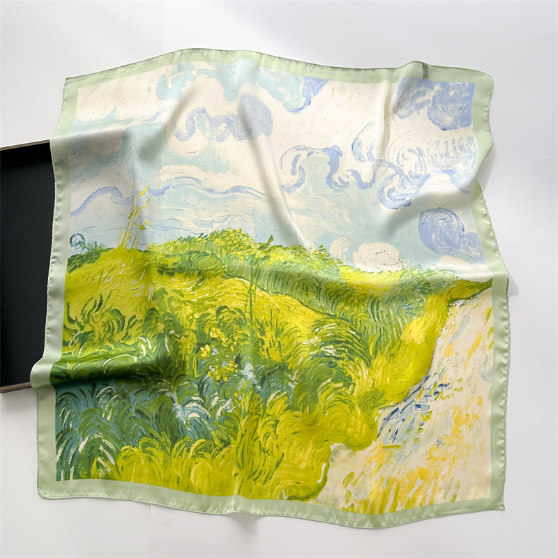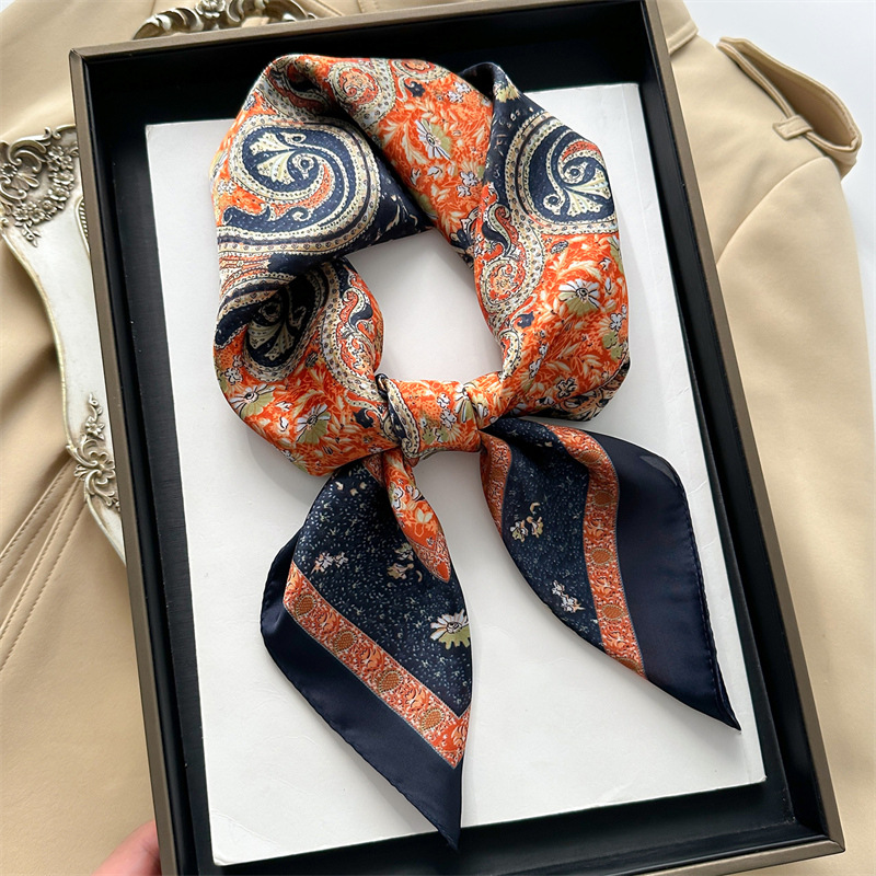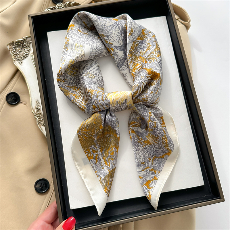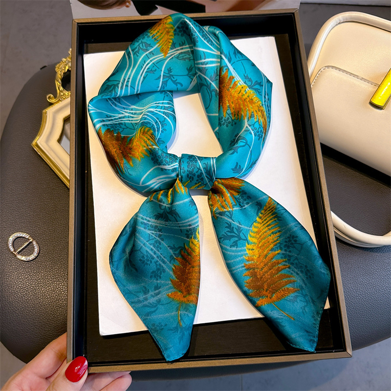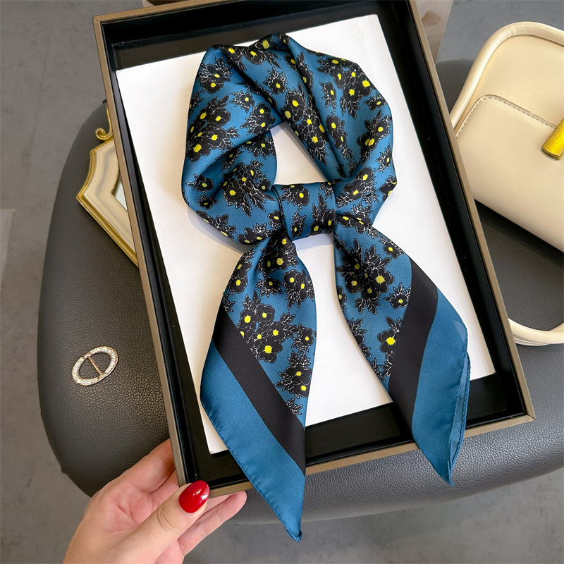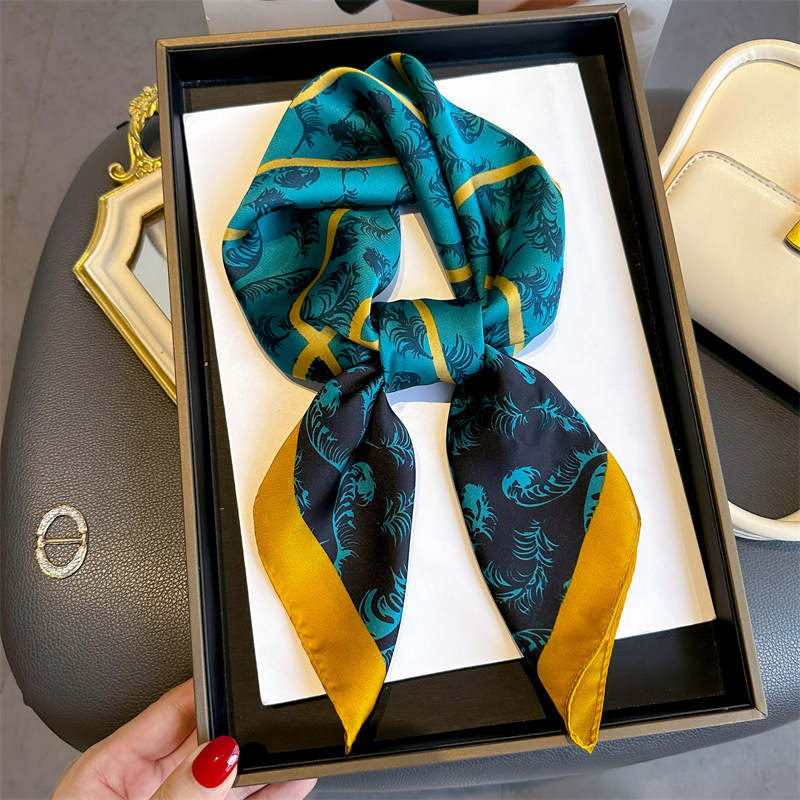 봄과 여름 만화 귀여운 실크 스카프 작은 사각 실크 70cm 스카프 여성용 한국식 고양이 머리 벨트 장식 머리 스카프