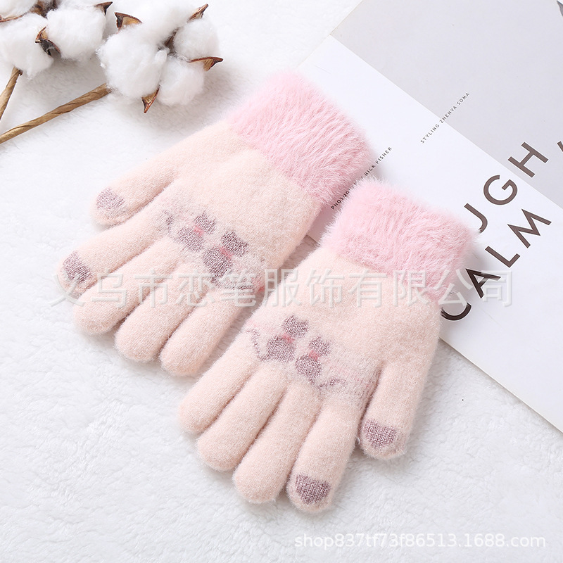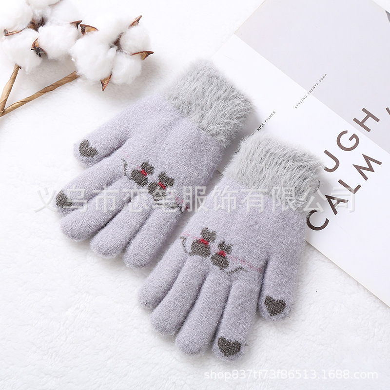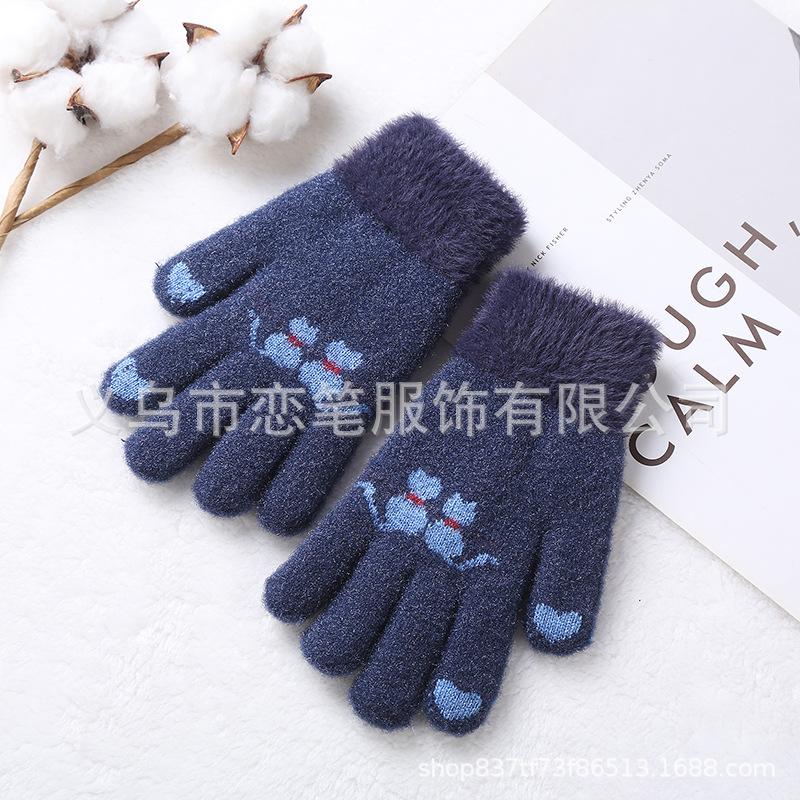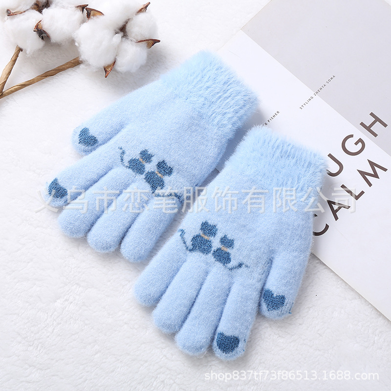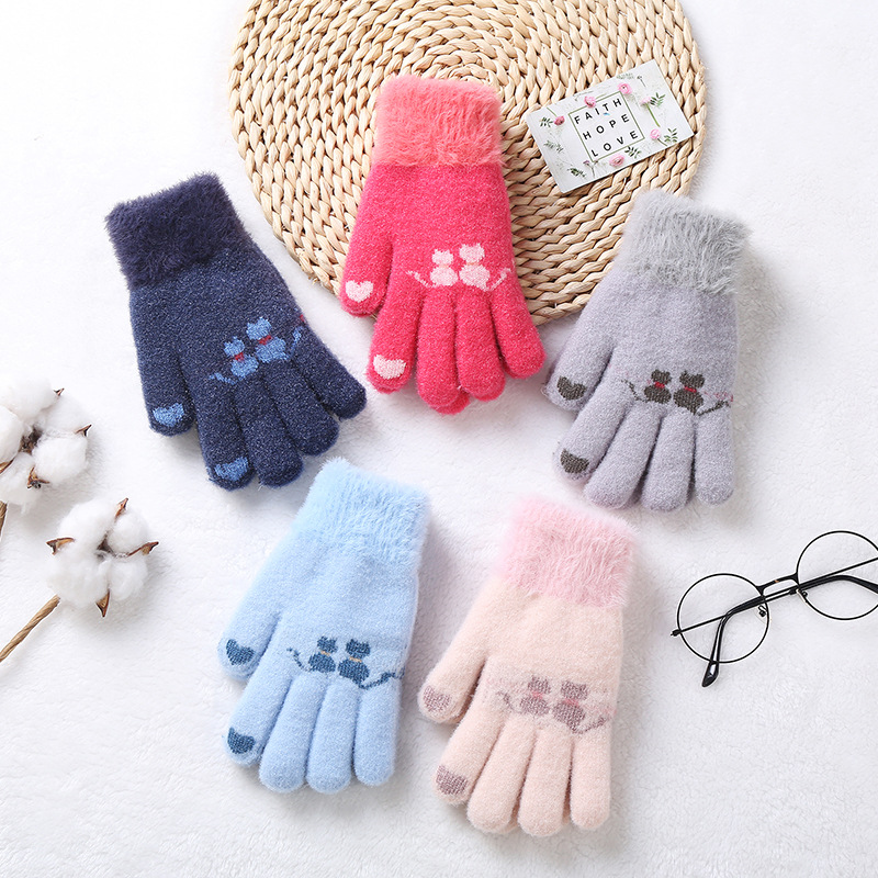 어린이 다섯 손가락 장갑 겨울 소년 소녀 고양이 크리스탈 벨벳 두꺼운 따뜻한 어린이 초등학생 손가락 장갑
