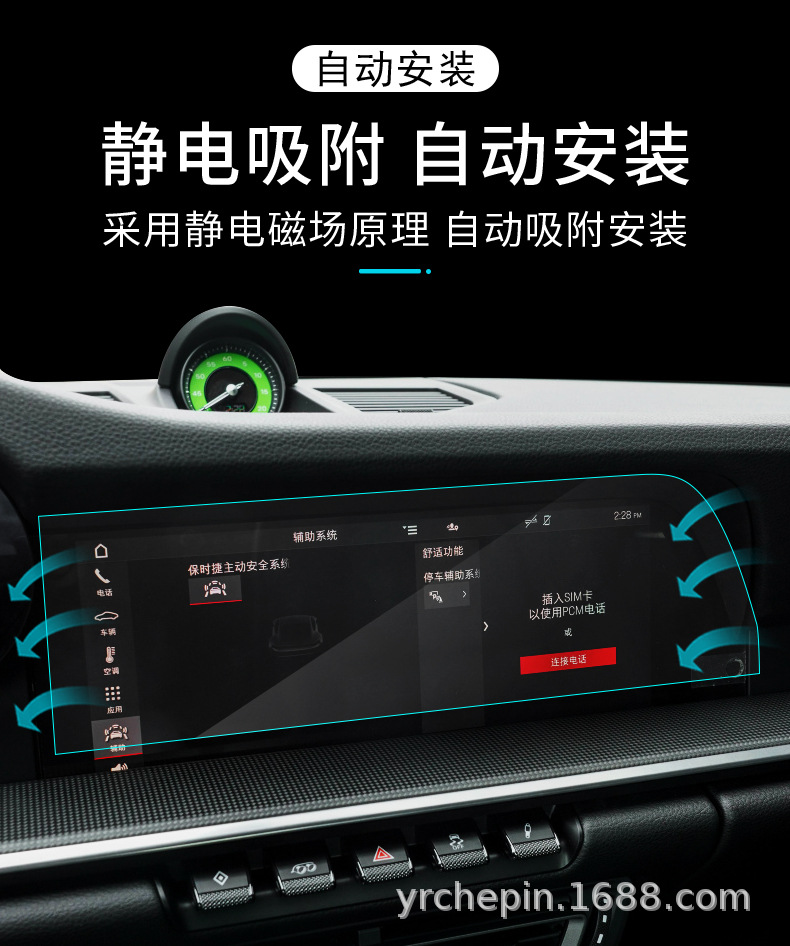 19-21 포르쉐 911 992 카레라 타르가 중앙 제어 내비게이션 스크린 유리 강화 필름에 적용 가능스토어 가기