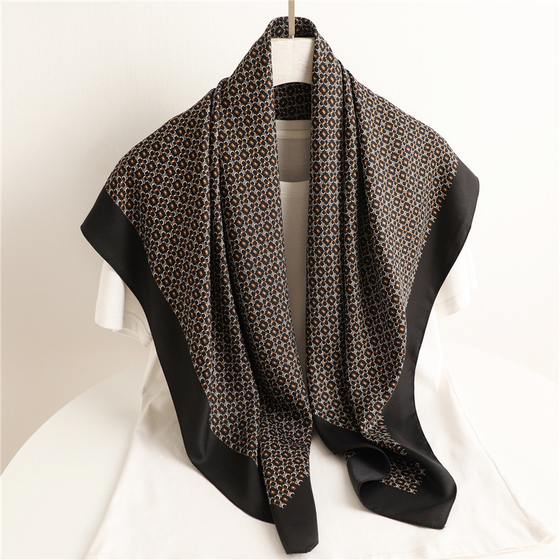 심플 레트로 프린트 실크 스카프 여성용 유럽과 미국 스타일 대형 스퀘어 스카프 봄과 가을 모든 매치 숄 헤드 스카프 얇은 능직 스카프스토어 가기