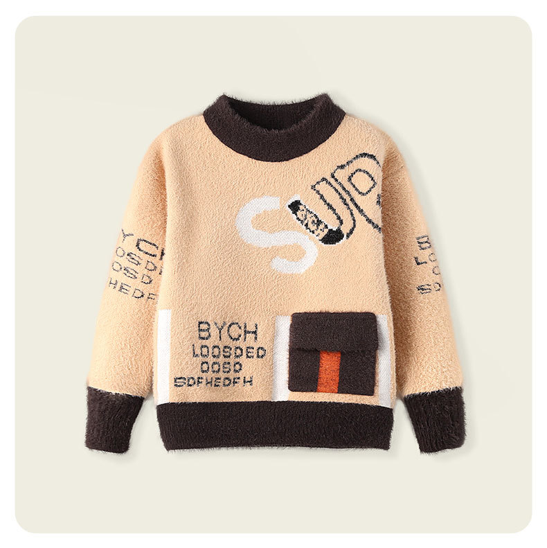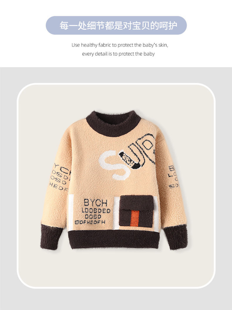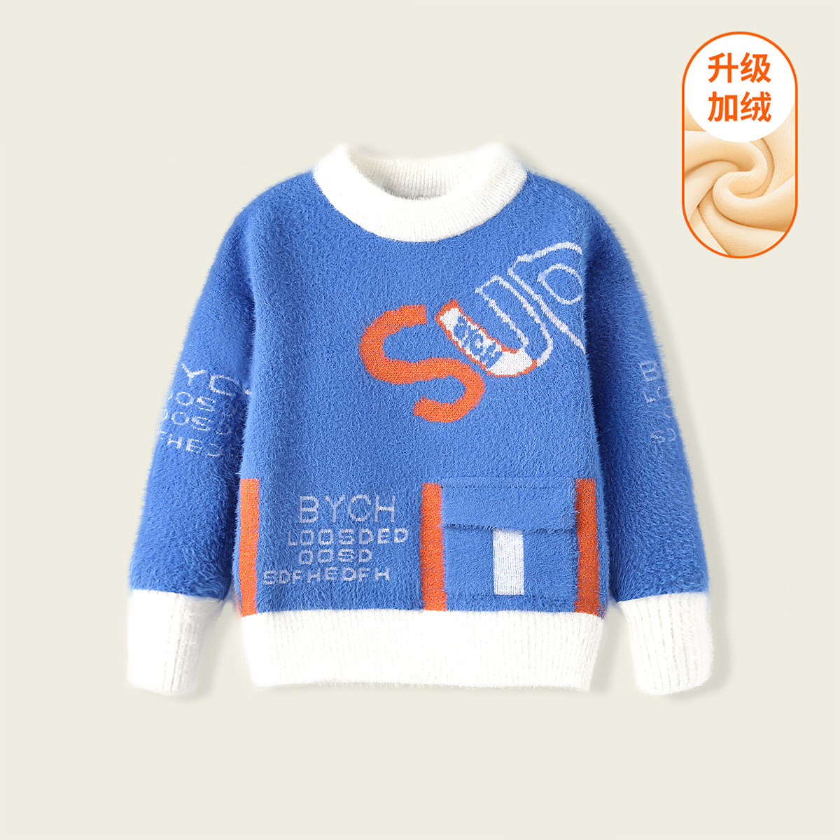【보풀이 생기지 않음】남아용 밍크 벨벳 스웨터 가을 겨울 신상 중대형 어린이 풀오버 아동 니트 남아용 스웨터