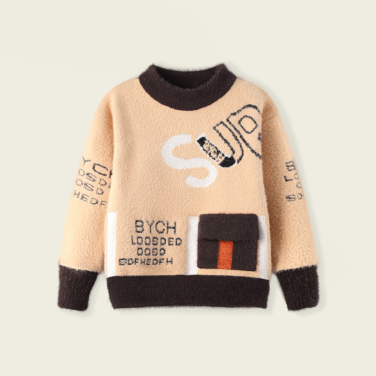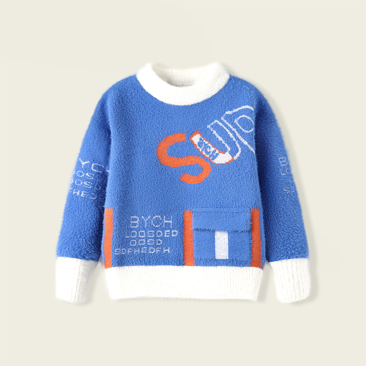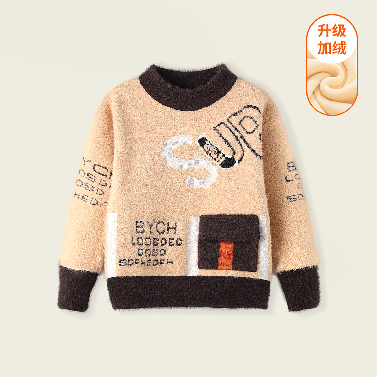 【보풀이 생기지 않음】남아용 밍크 벨벳 스웨터 가을 겨울 신상 중대형 어린이 풀오버 아동 니트 남아용 스웨터