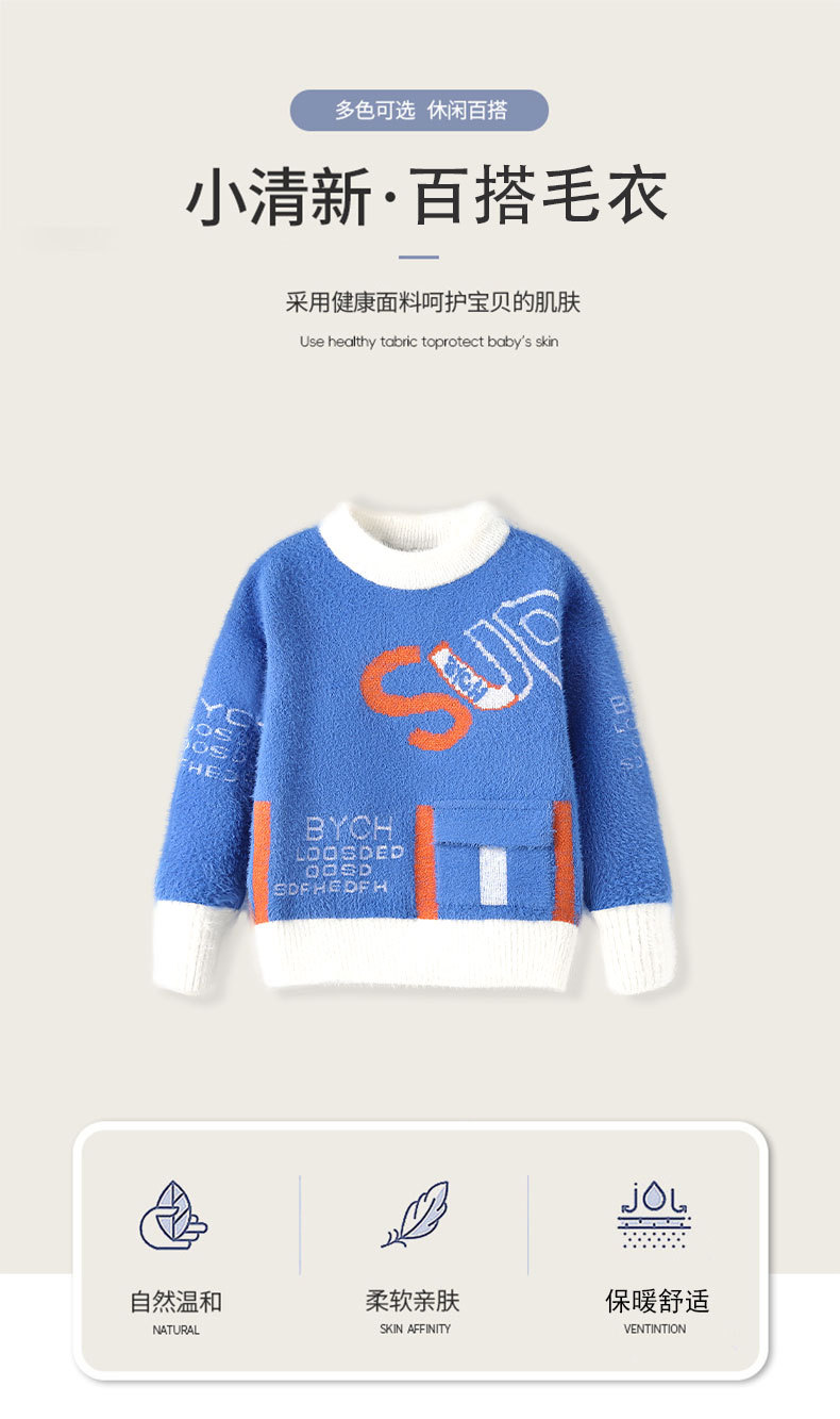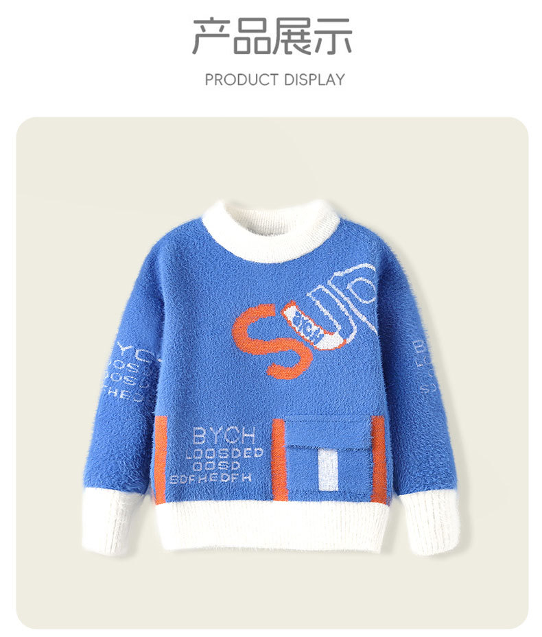 【보풀이 생기지 않음】남아용 밍크 벨벳 스웨터 가을 겨울 신상 중대형 어린이 풀오버 아동 니트 남아용 스웨터스토어 가기