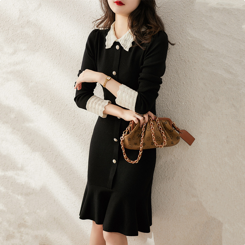 초가을 2024 새로운 여성 리틀 블랙 원피스 프랑스 틈새 하이 엔드 니트 원피스 봄 가을 피쉬 원피스