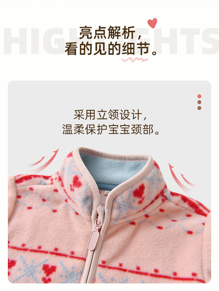 아기용 폴라 플리스 재킷 2025 봄 가을 얇은 스타일 스탠드 칼라 하트 무늬 페어 아일 트렌디 아동용 신상 재킷 wy1589스토어 가기