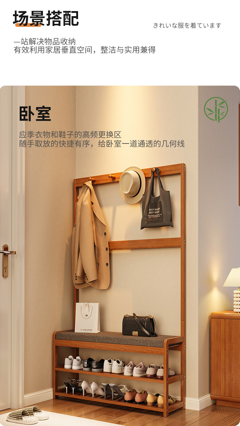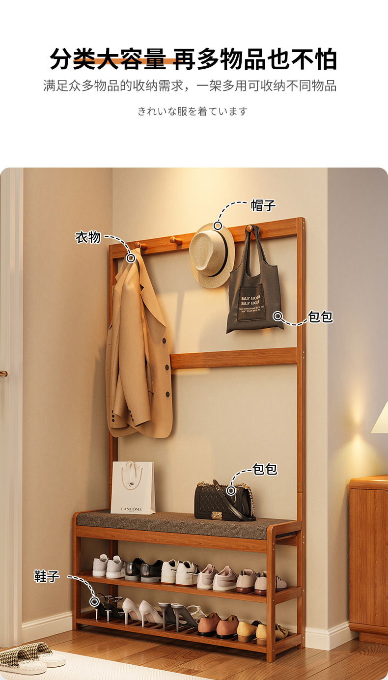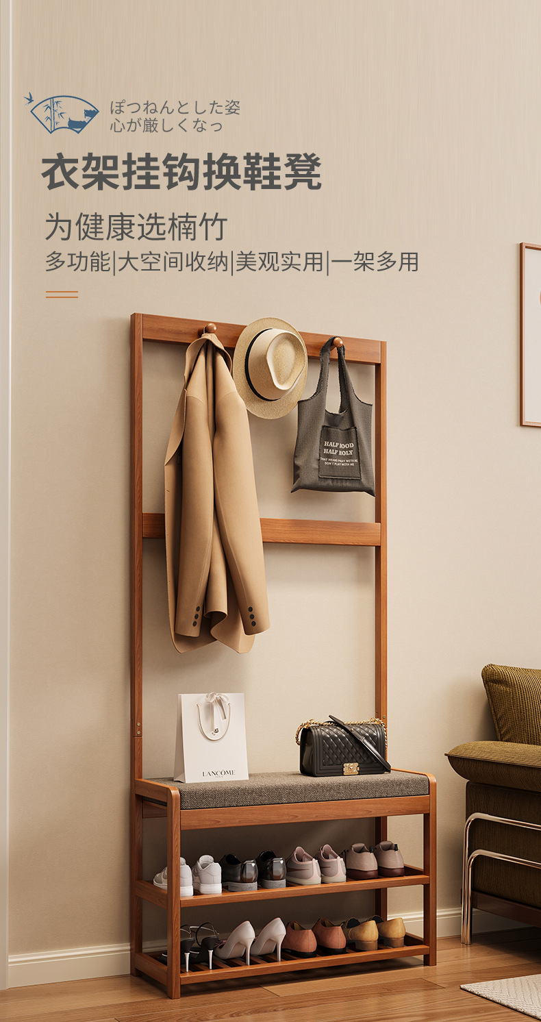 신발 교체용 의자, 수납 기능이 있는 옷걸이, 바닥형 옷걸이, 심플한 가정용 정리대, 임대방 현관용 긴 의자스토어 가기