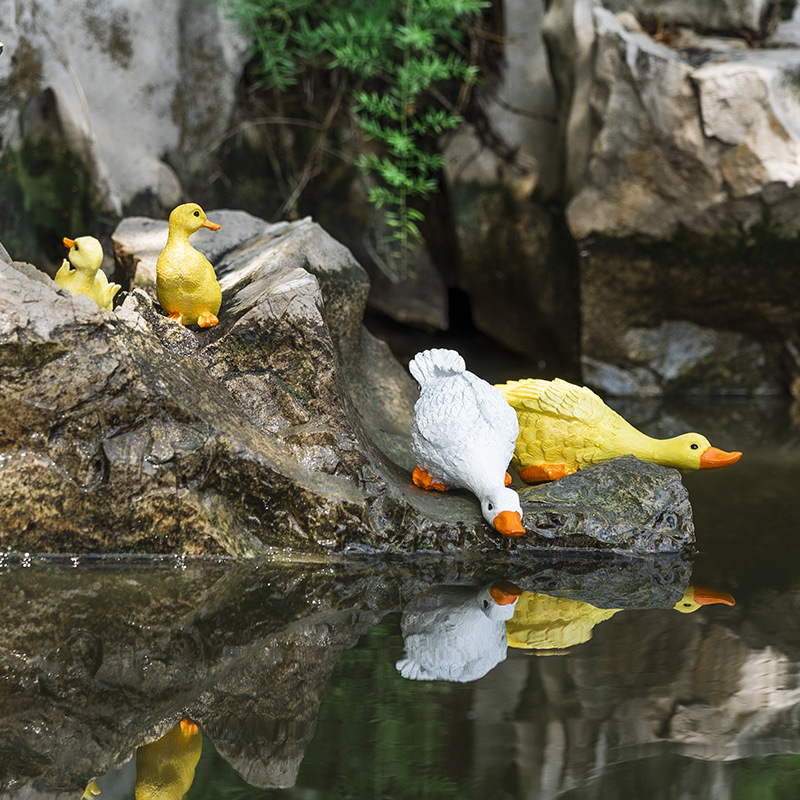귀여운 작은 토끼 큰 노란 오리 화분 치유 장식 장식품 정원 안뜰 발코니 마이크로 풍경