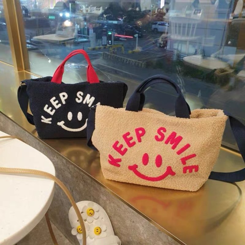 한국 스마일 백 플러시 백 여성용 크로스 바디 백 가을과 겨울 대용량 귀여운 간단한 양고기 울 손 숄더 백