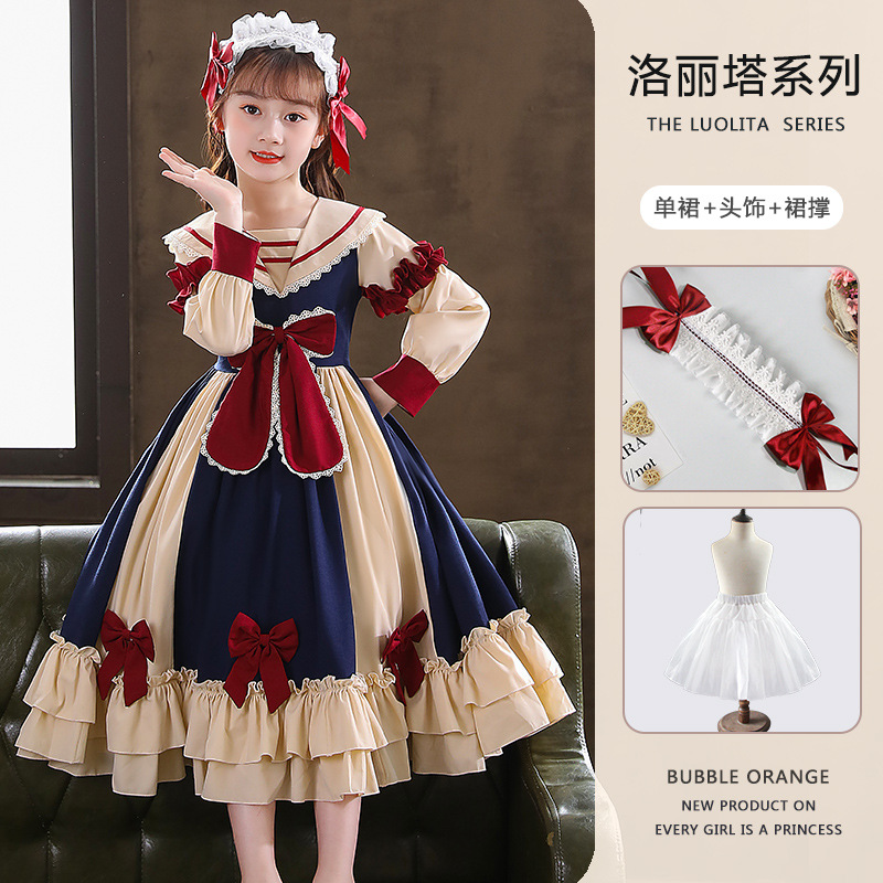 2025 아동복 드레스 가을 신상 여아 한국 스타일 아동 스커트 귀여운 로리타 여아 공주 드레스 가을