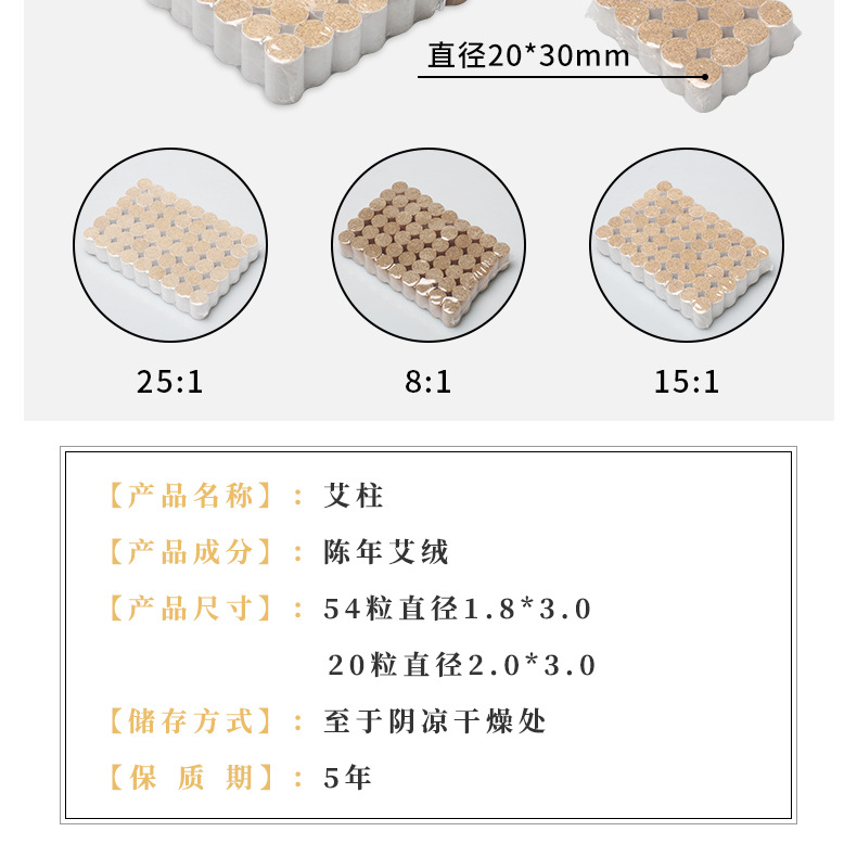 • 노란 피부 15:1 moxa 열 20 곡물 (직경 2cm)