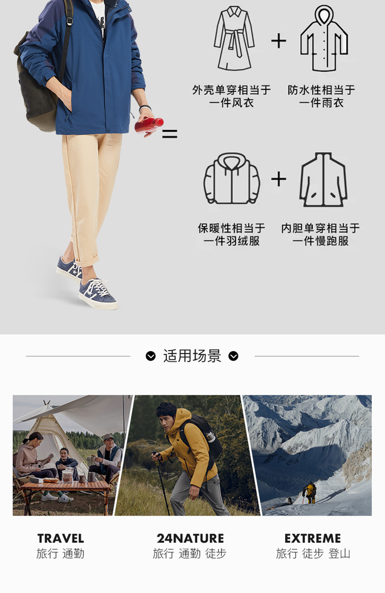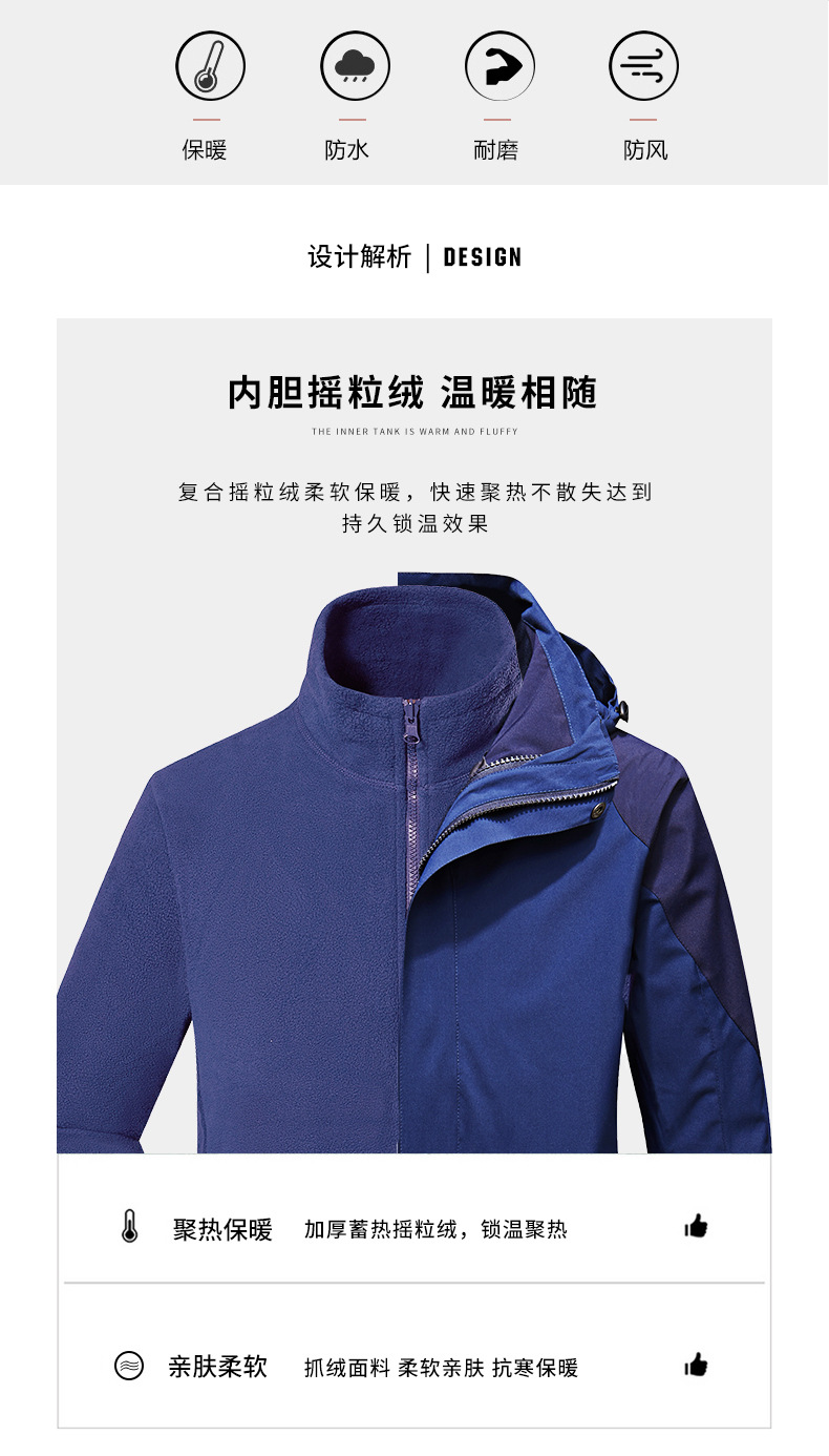 인기 있는 남녀공용 3-in-1 0.05kg 피스 세트 하이킹 겨울용 탈부착 가능한 플리스 안감 방풍 보온 재킷스토어 가기