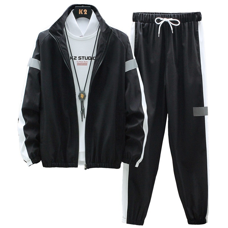 재킷 블랙 캐주얼 후드 한국 스타일 일반 바지 긴 소매 남성 캐주얼 스포츠 세트