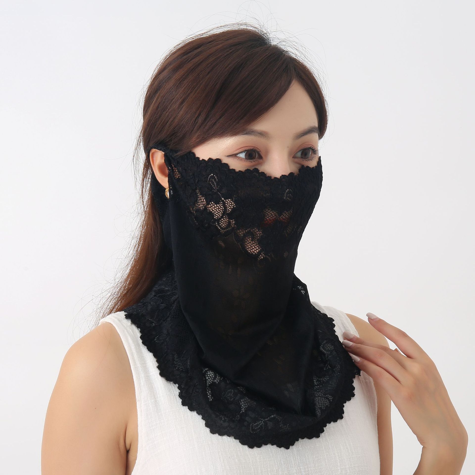 레이스 레이스 차양 자외선 차단제 여성용 여름 얇은 목 보호 스카프 4 계절 유니버설 가짜 칼라 귀 걸이 실크 스카프