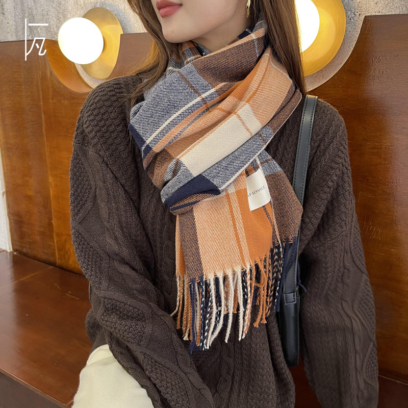 사용자 정의 대외 무역 새로운 격자 무늬 중립 캐주얼 숄 한국 아카데미 스타일 가을과 겨울 색상 매칭 목회 스카프스토어 가기